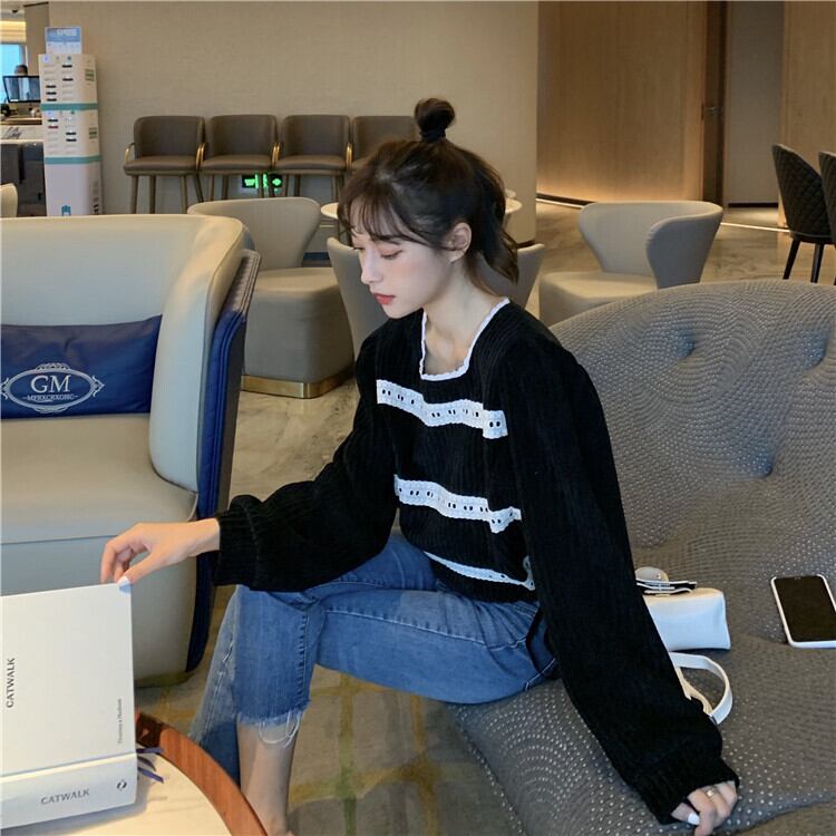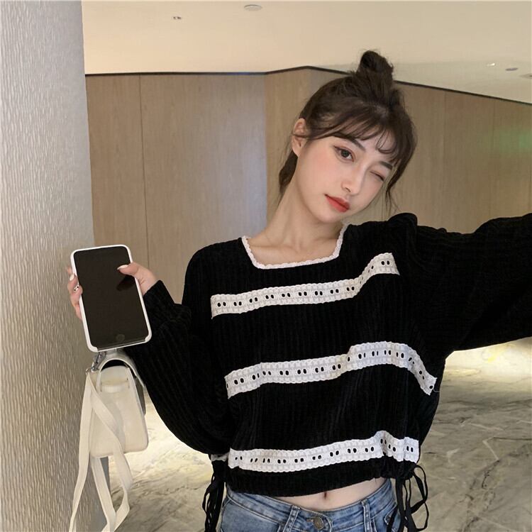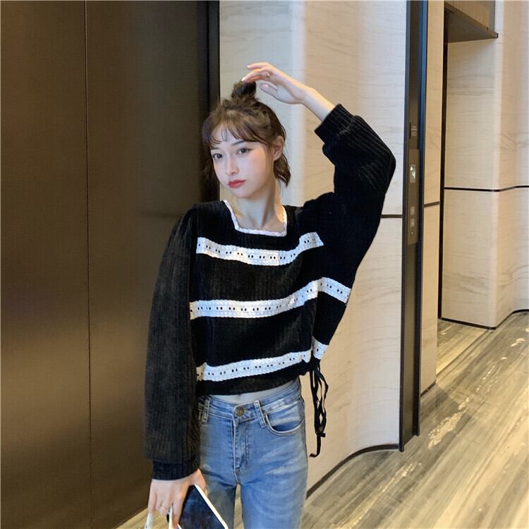 ✞ レースプルオーバー セーター ♥カワイイ♥スタンダードストライプトップス 大人女子☆ ロング レトロ スクウェア ステッチ ✞ゴスロリ SM ミリ 甘ロリ クラロリ 和ロリ エレガント 黒ロリ 姫ロリ 華ロリ BB-BB95816718249