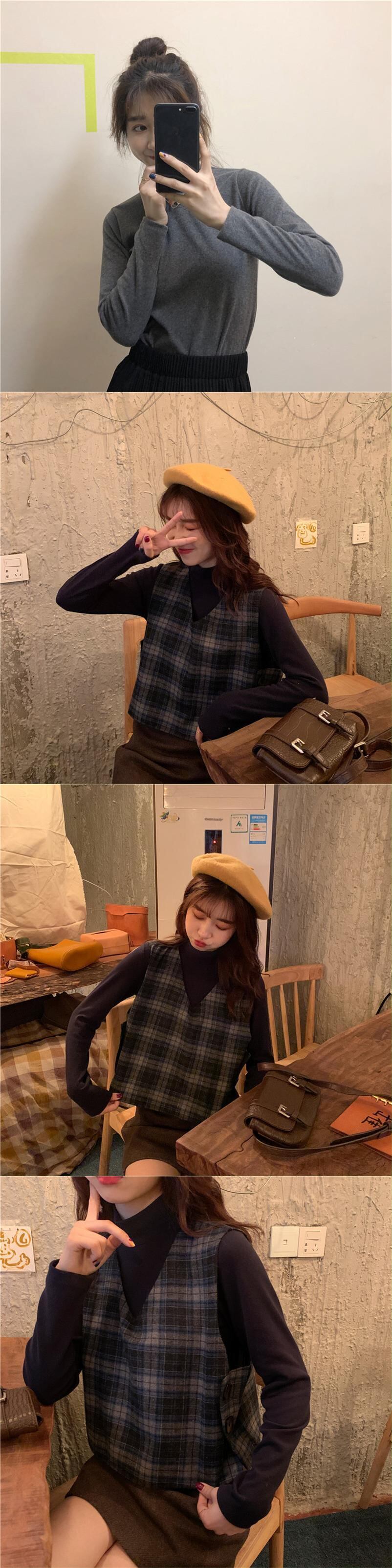 ✞ ソリッド カラースリムシャツブラウススタンダードチェック柄Vネック レトロ ソリッドカラー ✞ゴスロリ SM ミリ 甘ロリ クラロリ 和ロリ エレガント 黒ロリ 姫ロリ 華ロリ BB-BB96098921426