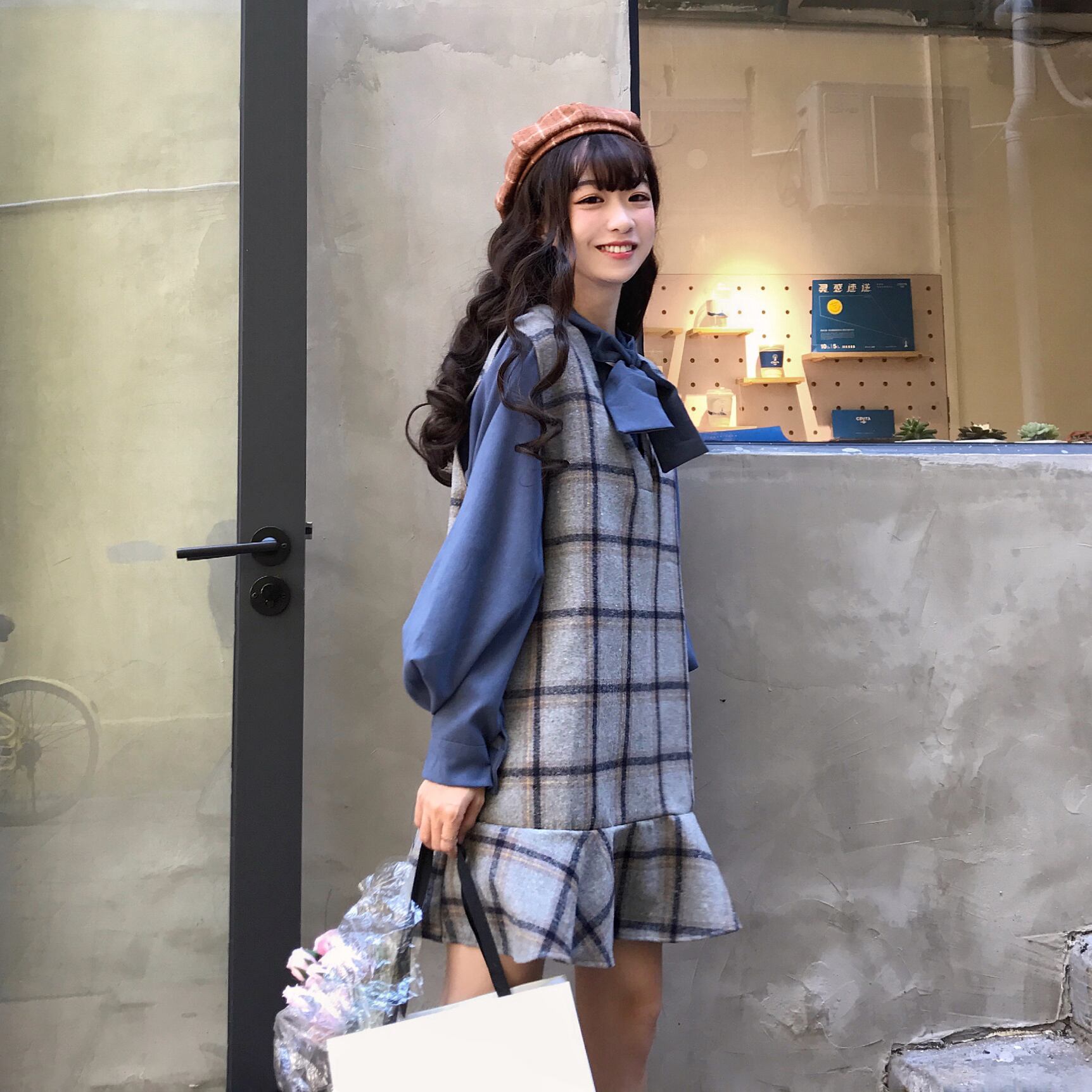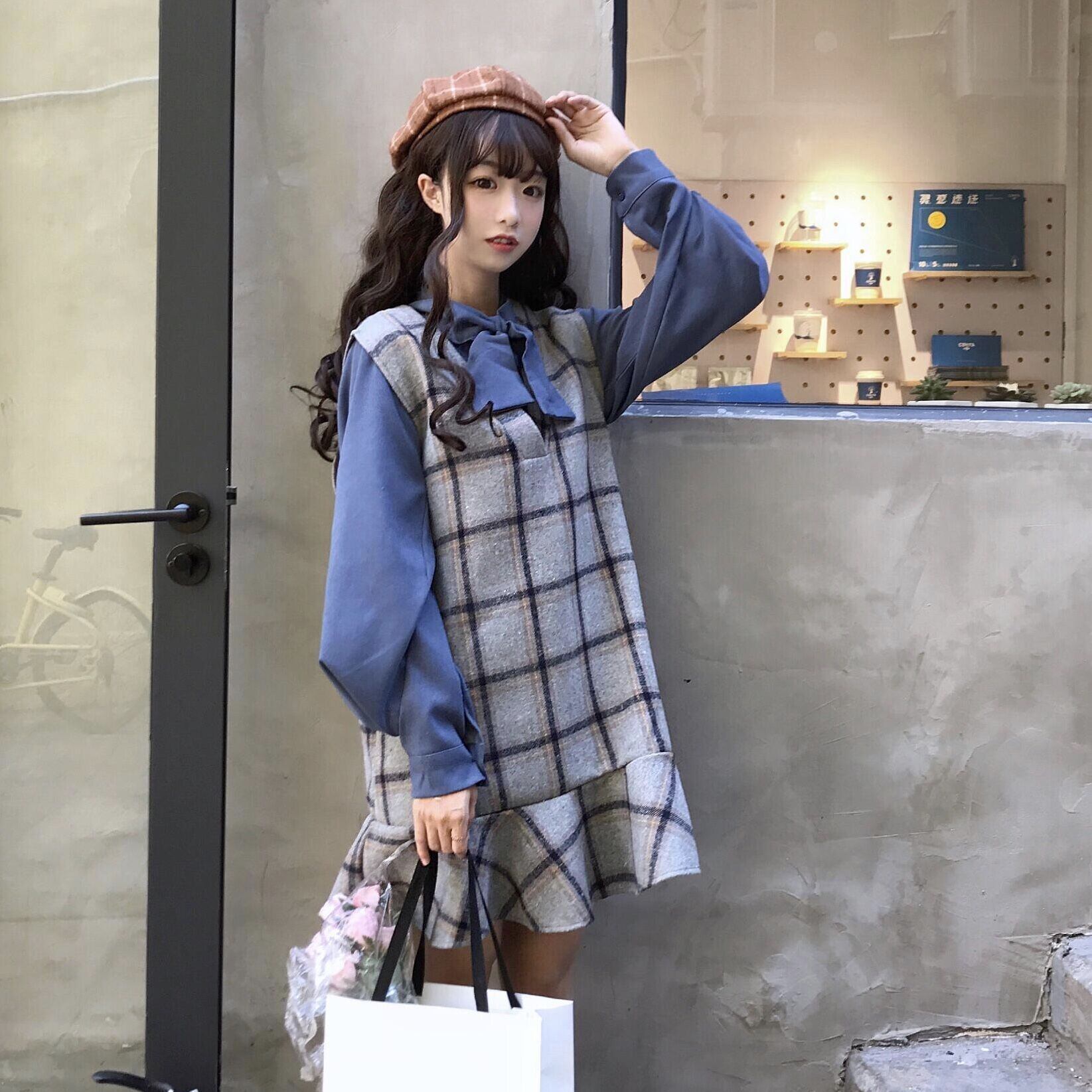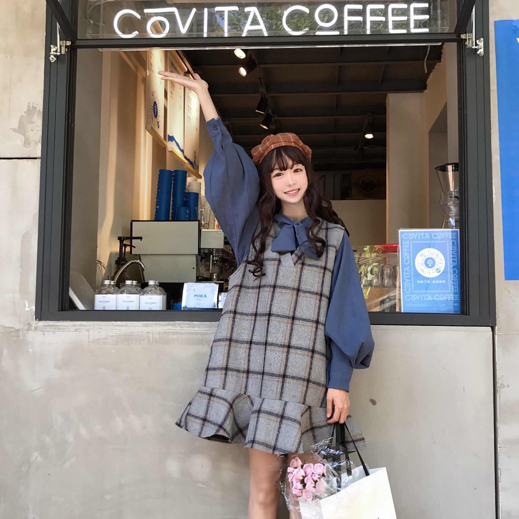 色:アプリコットシャツワンピース,ブルーシャツワンピース,グレーのチェック柄スカートワンピース