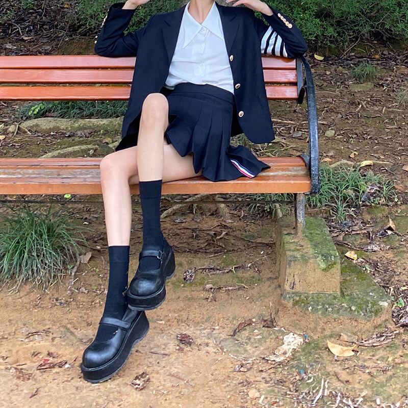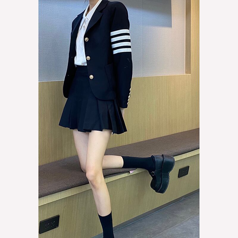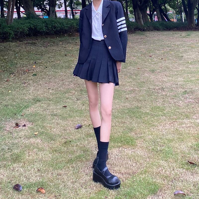 色:ネイビーブルージャケットシングル,紺のスカートワンピース