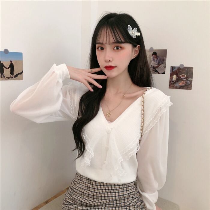 ✞ オータムレースVネックシャツブラウス大人女子☆ブラウス ロング スウィート 秋物 ✞ゴスロリ SM ミリ 甘ロリ クラロリ 和ロリ エレガント 黒ロリ 姫ロリ 華ロリ BB-BB10818481335