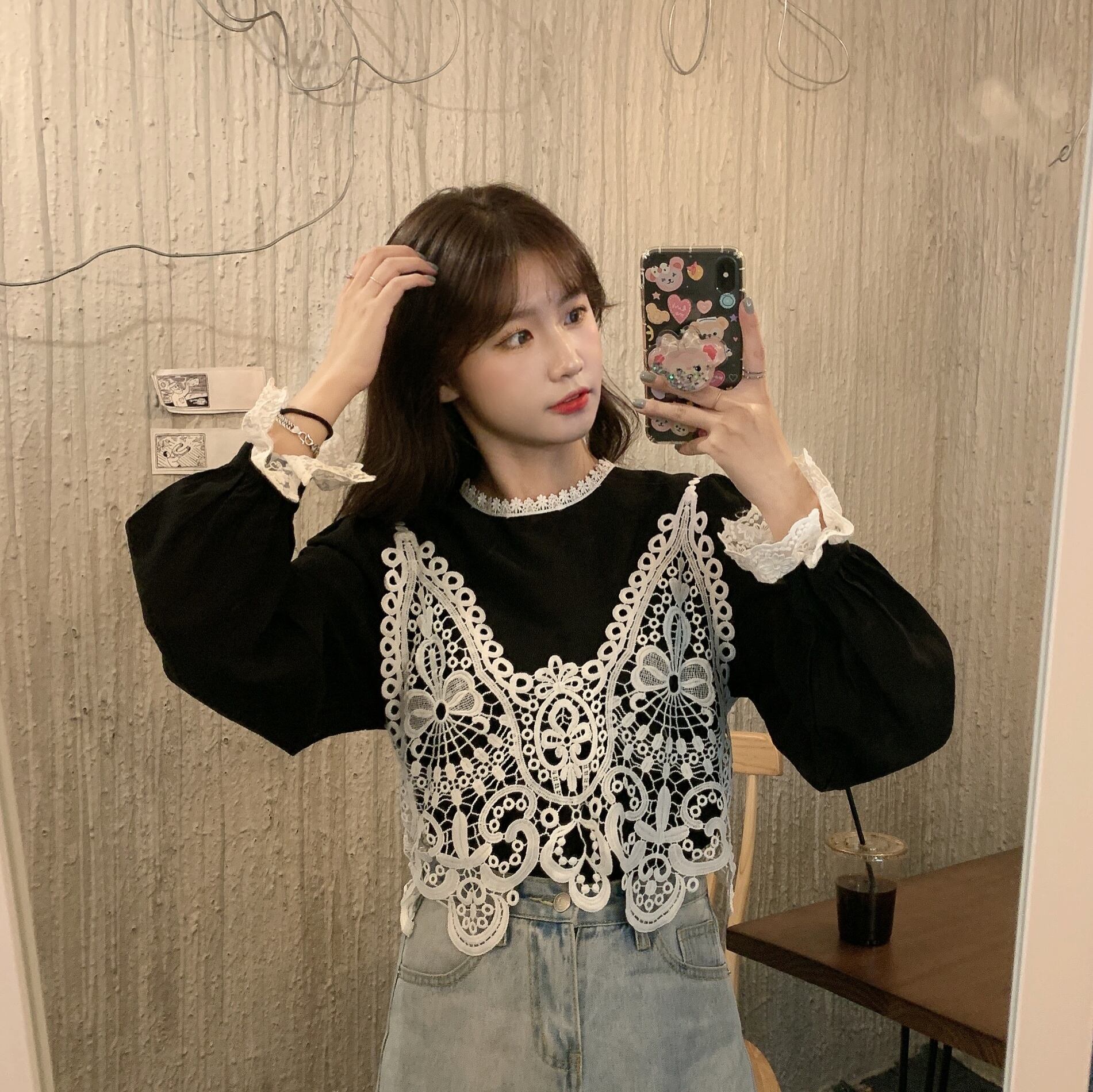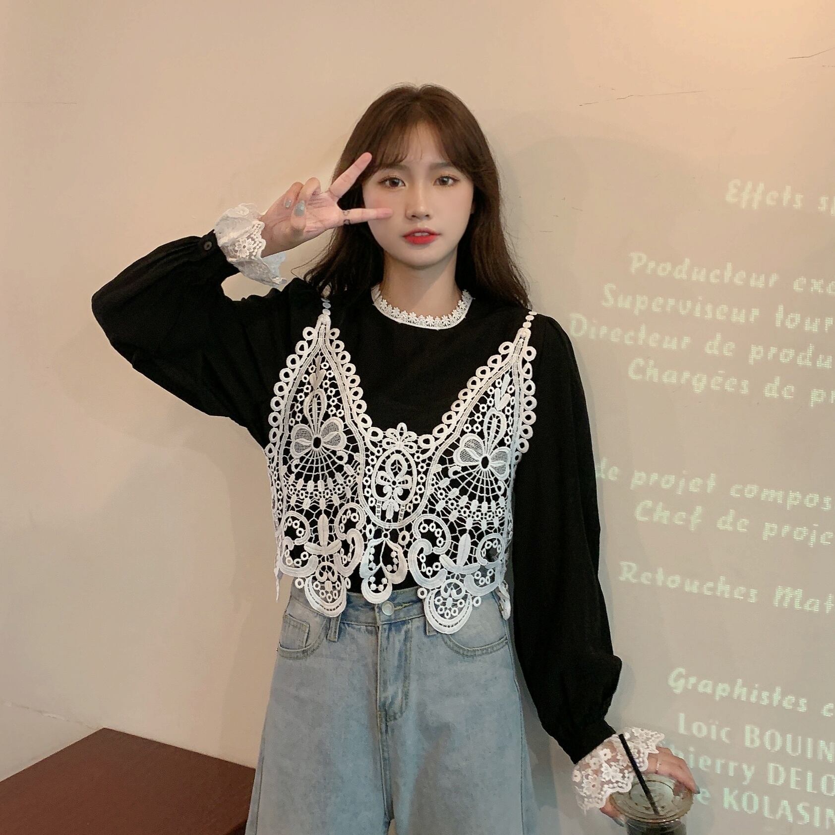 ✞ スタンダードレースシャツブラウス♥カワイイ♥大人女子☆ ロング レトロ スウィート ✞ゴスロリ SM ミリ 甘ロリ クラロリ 和ロリ エレガント 黒ロリ 姫ロリ 華ロリ BB-BB49744078955