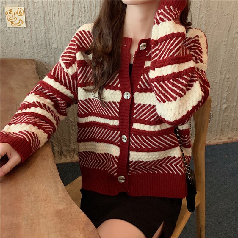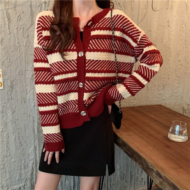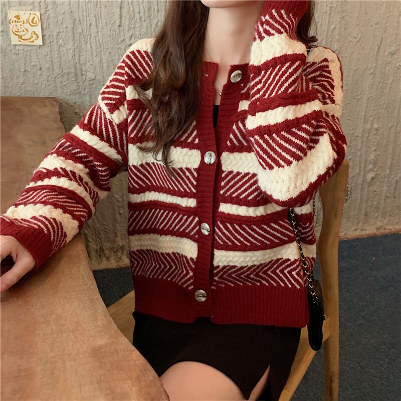 ✞ ♡スタンダードストライプセーター ジャケット ショート長袖スリーブカーディガン大人女子☆ ロング レトロ ✞ゴスロリ SM ミリ 甘ロリ クラロリ 和ロリ エレガント 黒ロリ 姫ロリ 華ロリ BB-BB20477006688