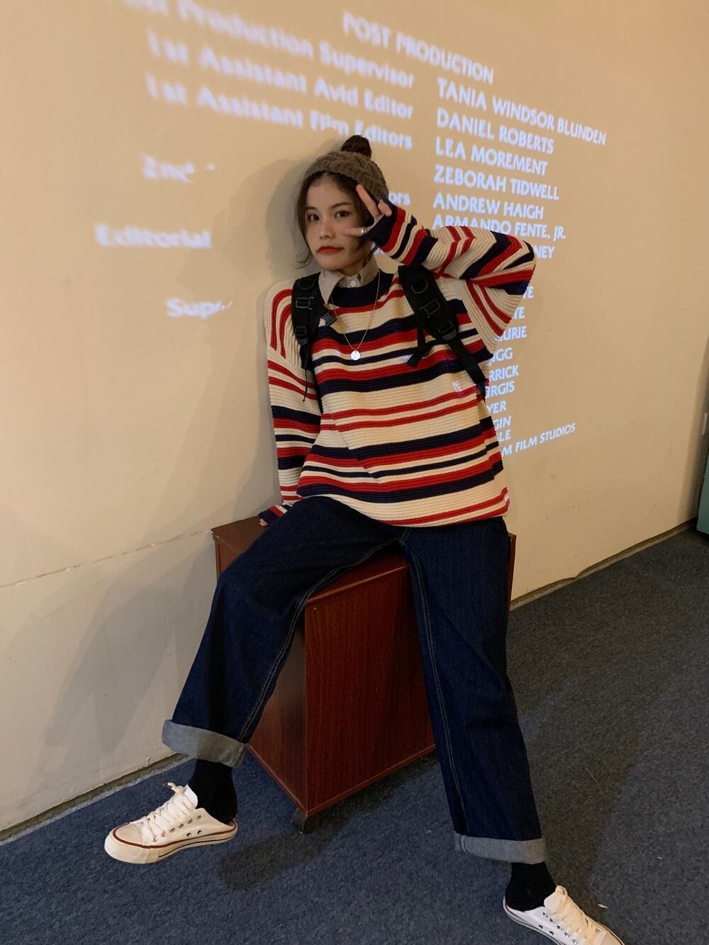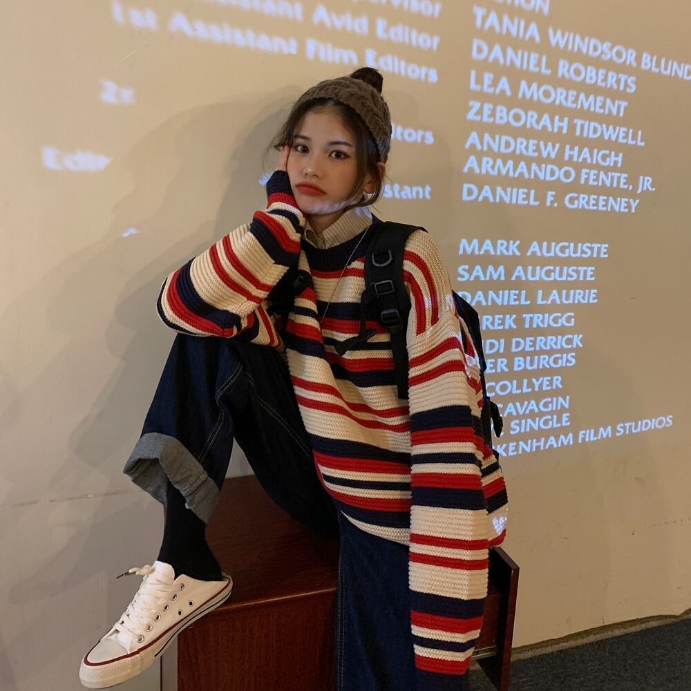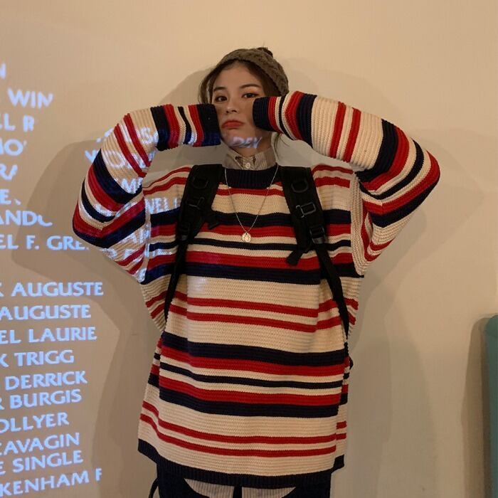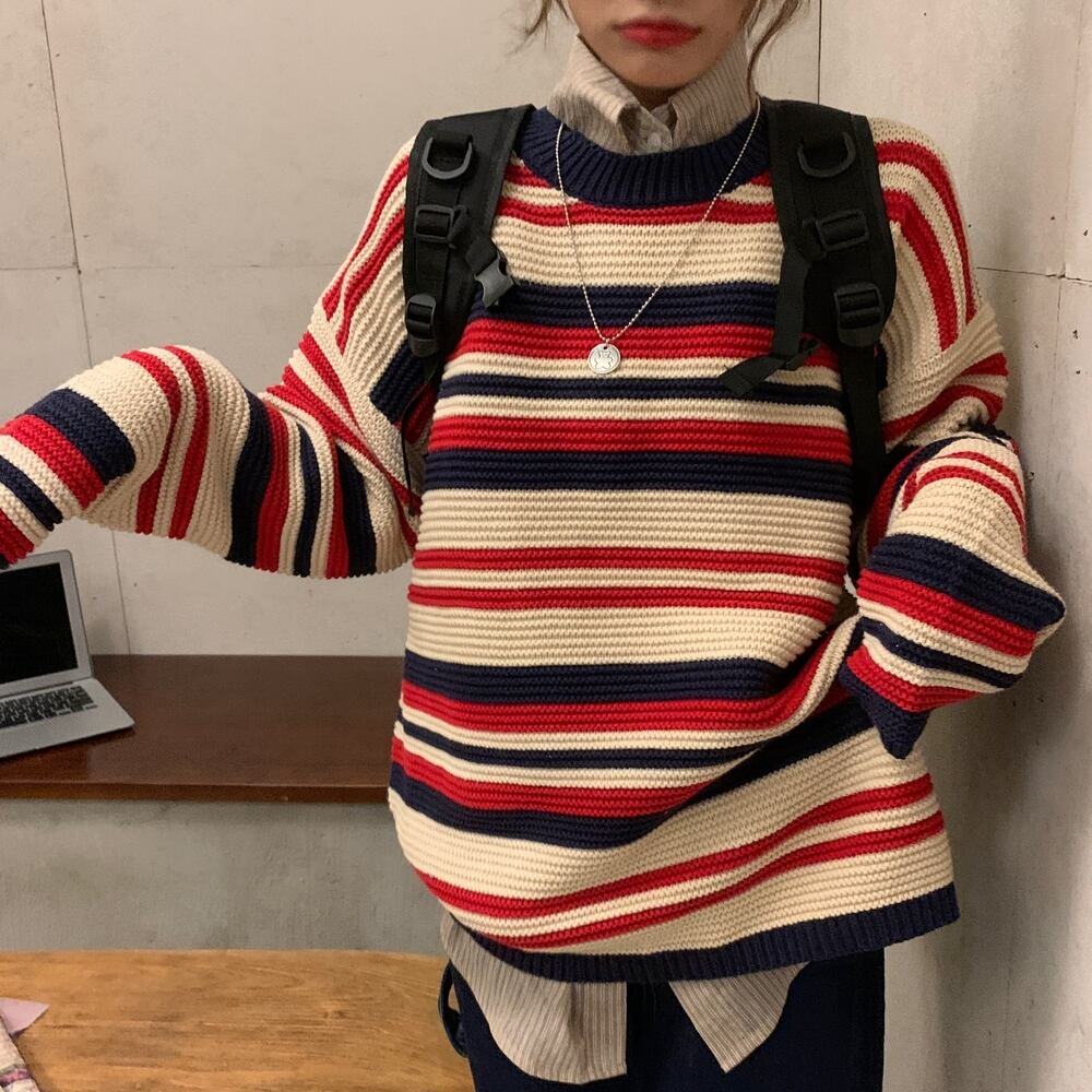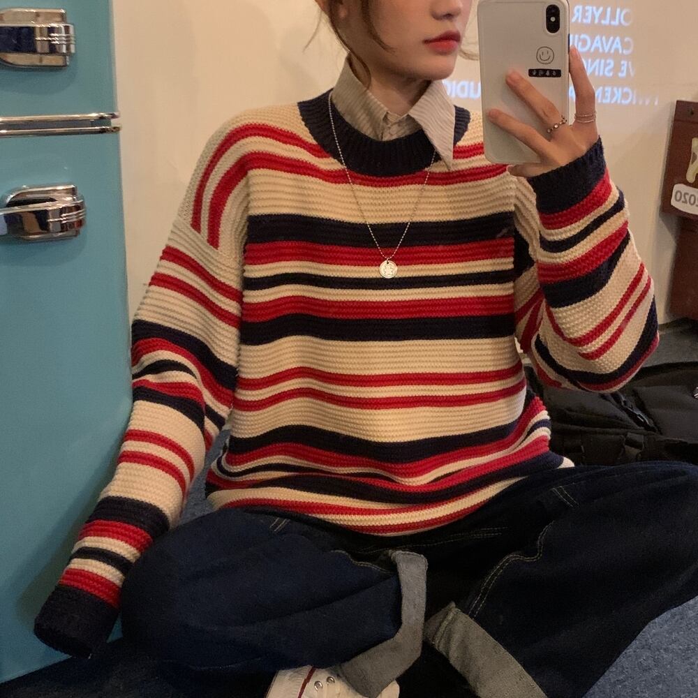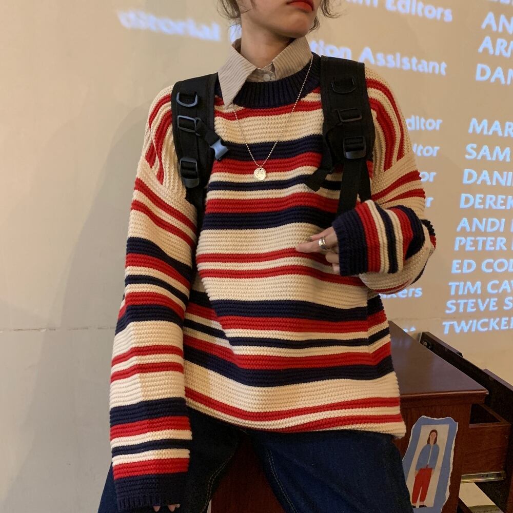 ✞ ニットセーター スタンダードストライププルオーバー ブラウス ロング レトロ ✞ゴスロリ SM ミリ 甘ロリ クラロリ 和ロリ エレガント 黒ロリ 姫ロリ 華ロリ BB-BB6699483812