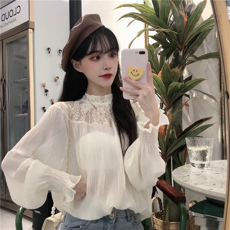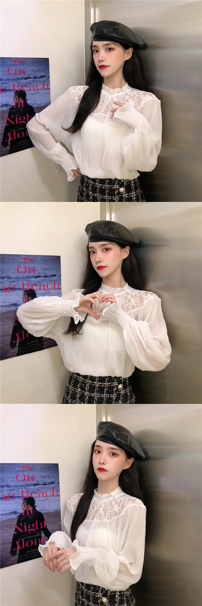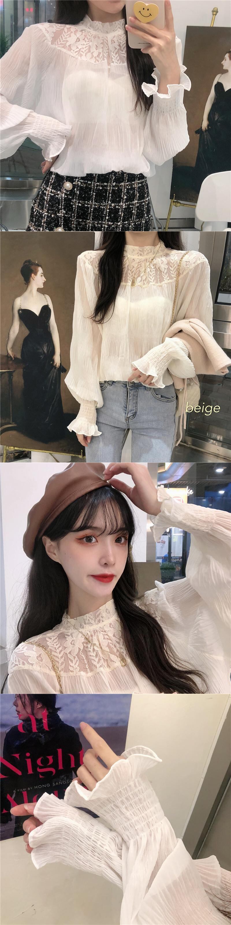 ✞ レースサイドシフォンシャツブラウススリーブ長袖♥カワイイ♥ ロング ランタンスリーブ スウィート ✞ゴスロリ SM ミリ 甘ロリ クラロリ 和ロリ エレガント 黒ロリ 姫ロリ 華ロリ BB-BB3235590435