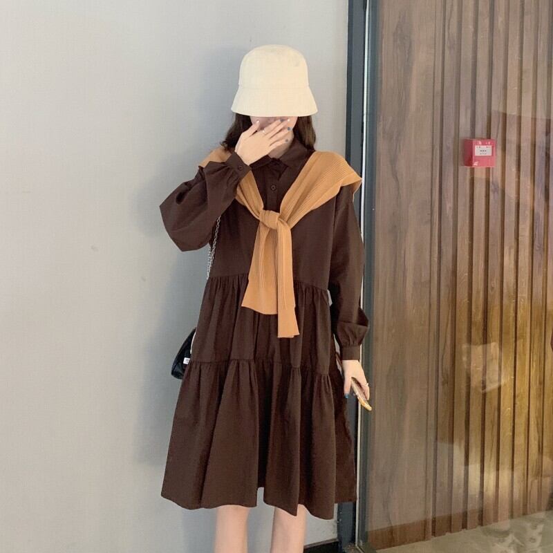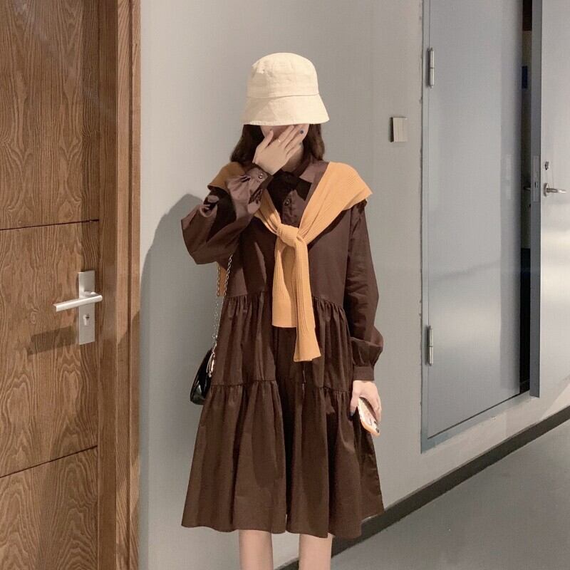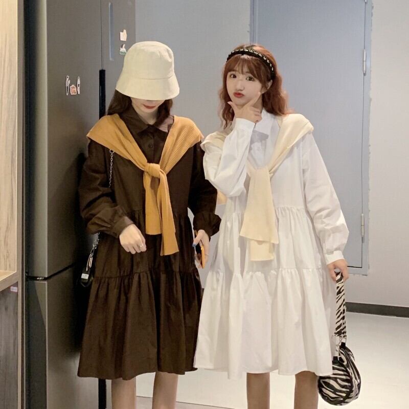 色:白いシャツスカート,コーヒーシャツスカートワンピース,アプリコットショールワンピース,カーキショールシングルピース