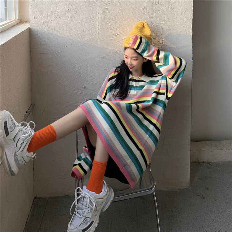 ✞ カラーストライプ♡スタンダードニットスカート 大人女子☆ ロング レトロ スウィート ✞ゴスロリ SM ミリ 甘ロリ クラロリ 和ロリ エレガント 黒ロリ 姫ロリ 華ロリ BB-BB50006930410