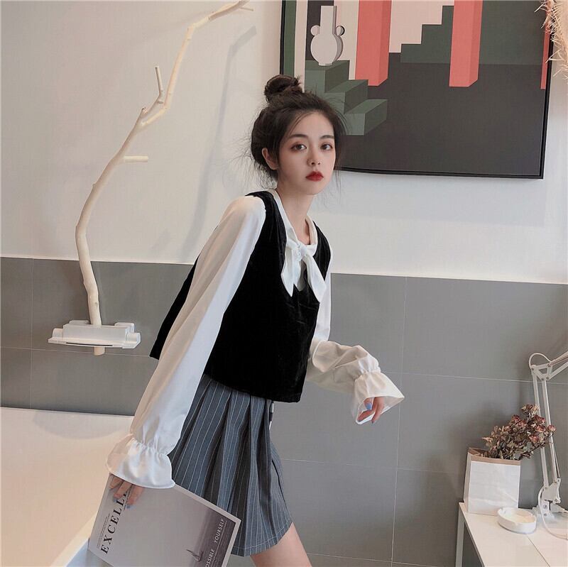 ✞ ♡ノースリーブベルベット大人女子☆リボン白シャツブラウス ロング ホワイト レース スウィート レースアップ ✞ゴスロリ SM ミリ 甘ロリ クラロリ 和ロリ エレガント 黒ロリ 姫ロリ 華ロリ BB-BB49438782737