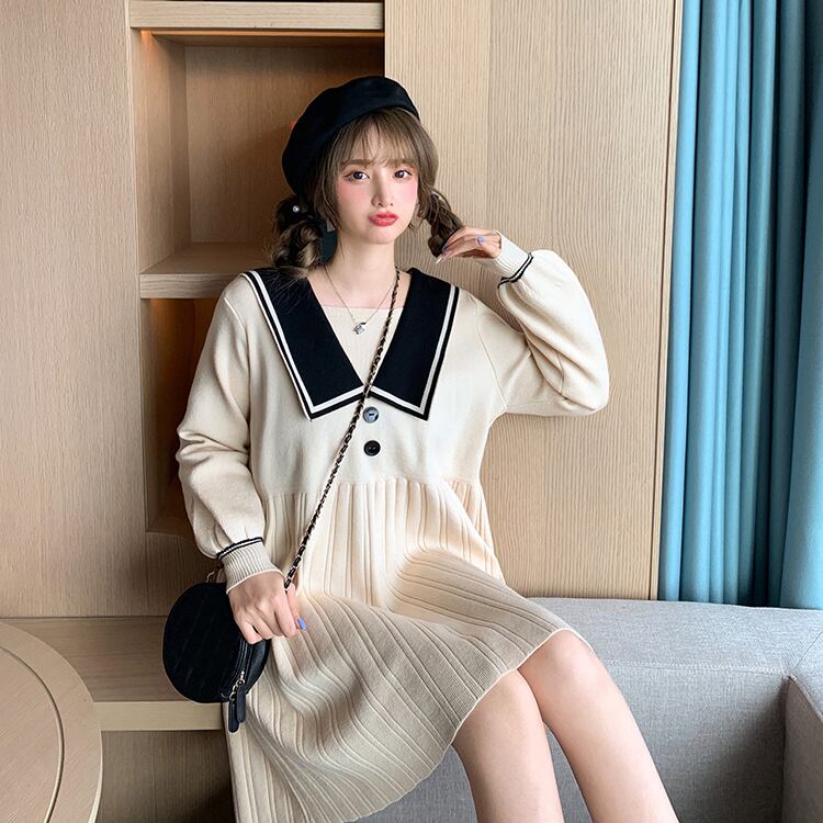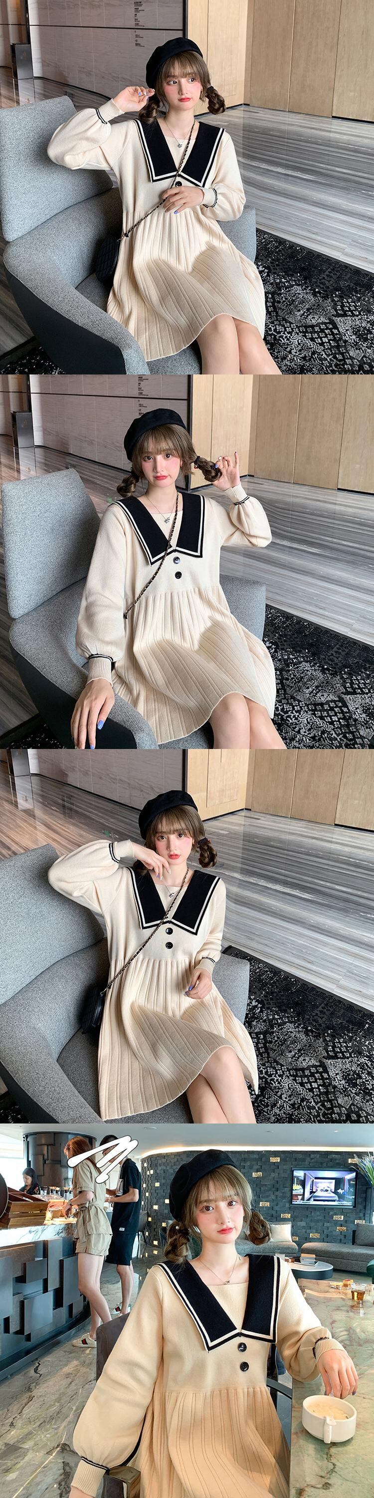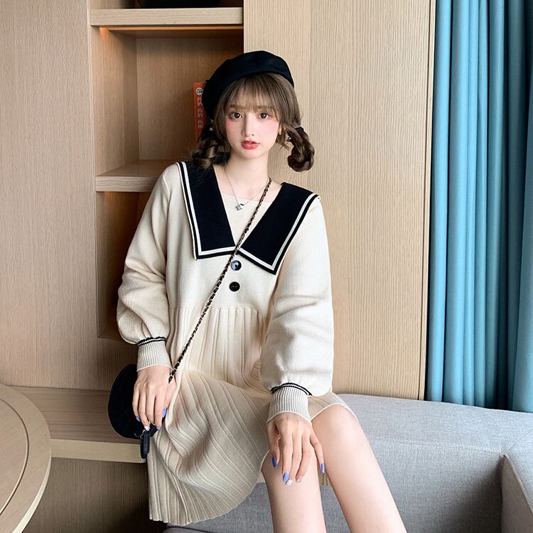 ✞ ♡カラーネイビー★♥カワイイ♥ニット ロング ランタンスリーブ ✞ゴスロリ SM ミリ 甘ロリ クラロリ 和ロリ エレガント 黒ロリ 姫ロリ 華ロリ BB-BB48141898981