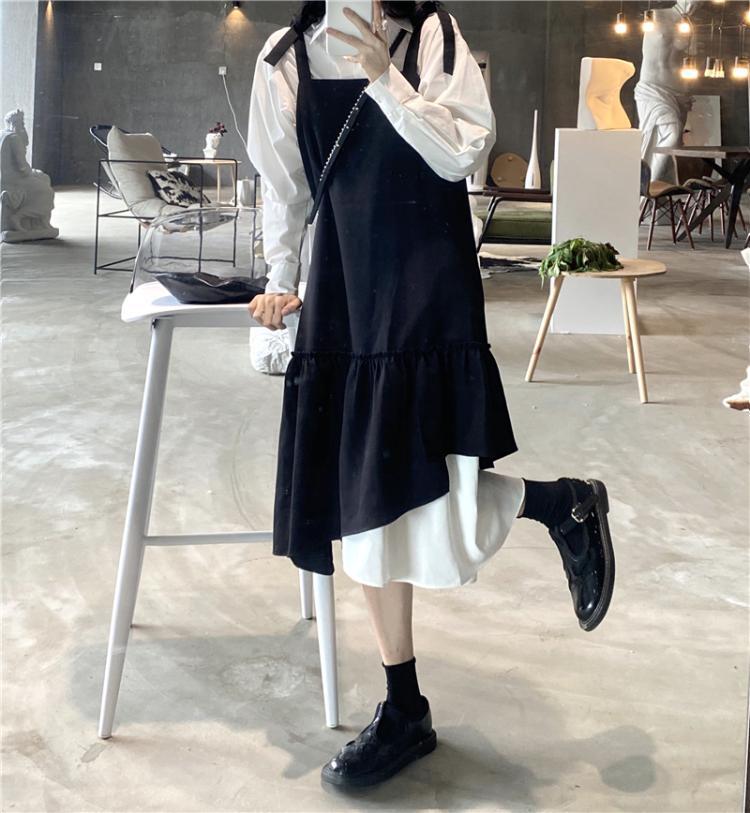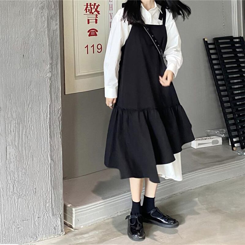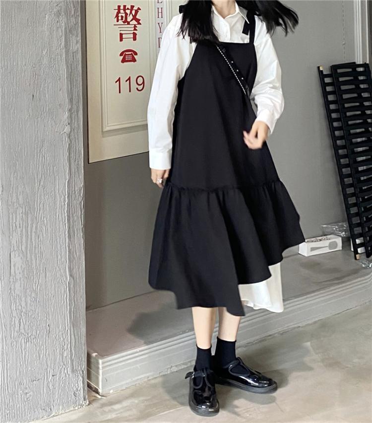 色:シャツワンピース,コントラストカラーベストスカートワンピース