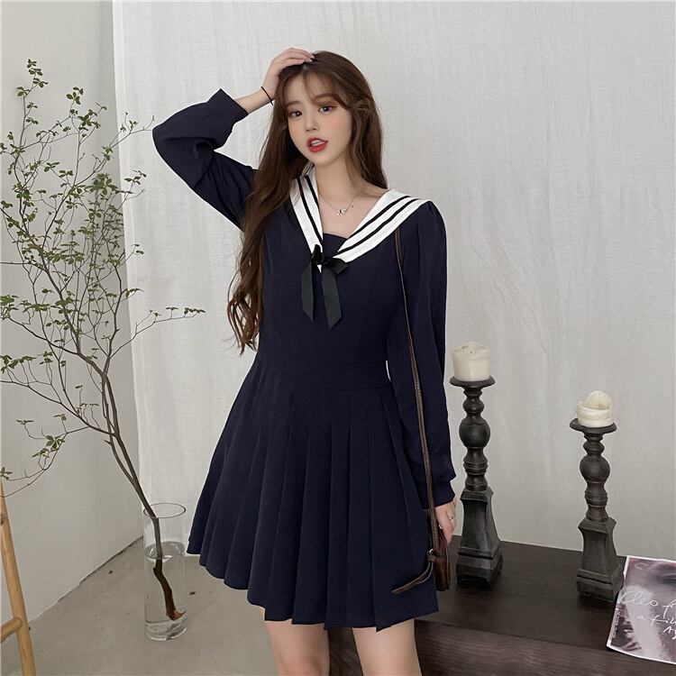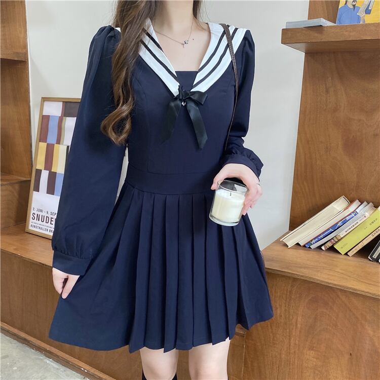 ✞ ♡カラーリボンネイビープリーツスカート ロング スウィート ステッチ ✞ゴスロリ SM ミリ 甘ロリ クラロリ 和ロリ エレガント 黒ロリ 姫ロリ 華ロリ BB-BB7714095345
