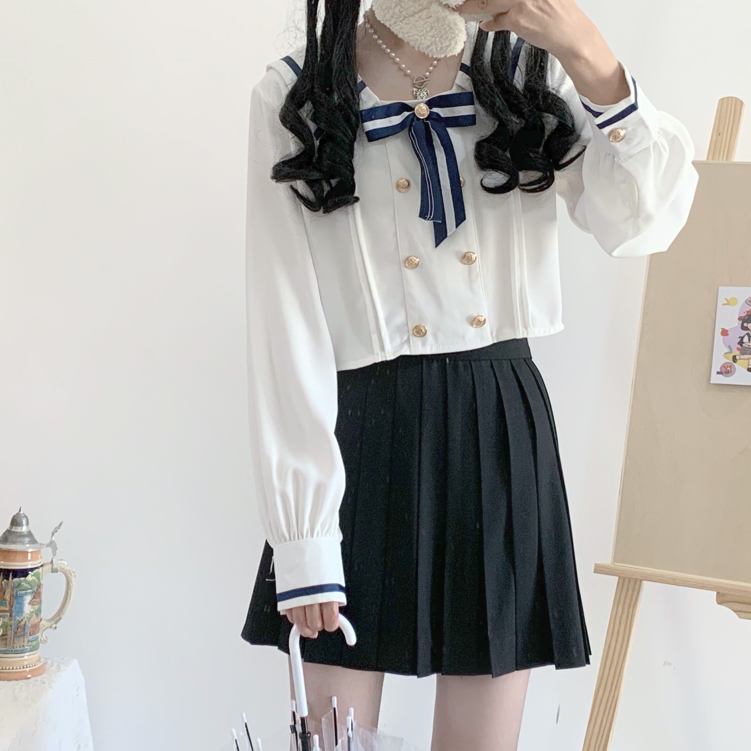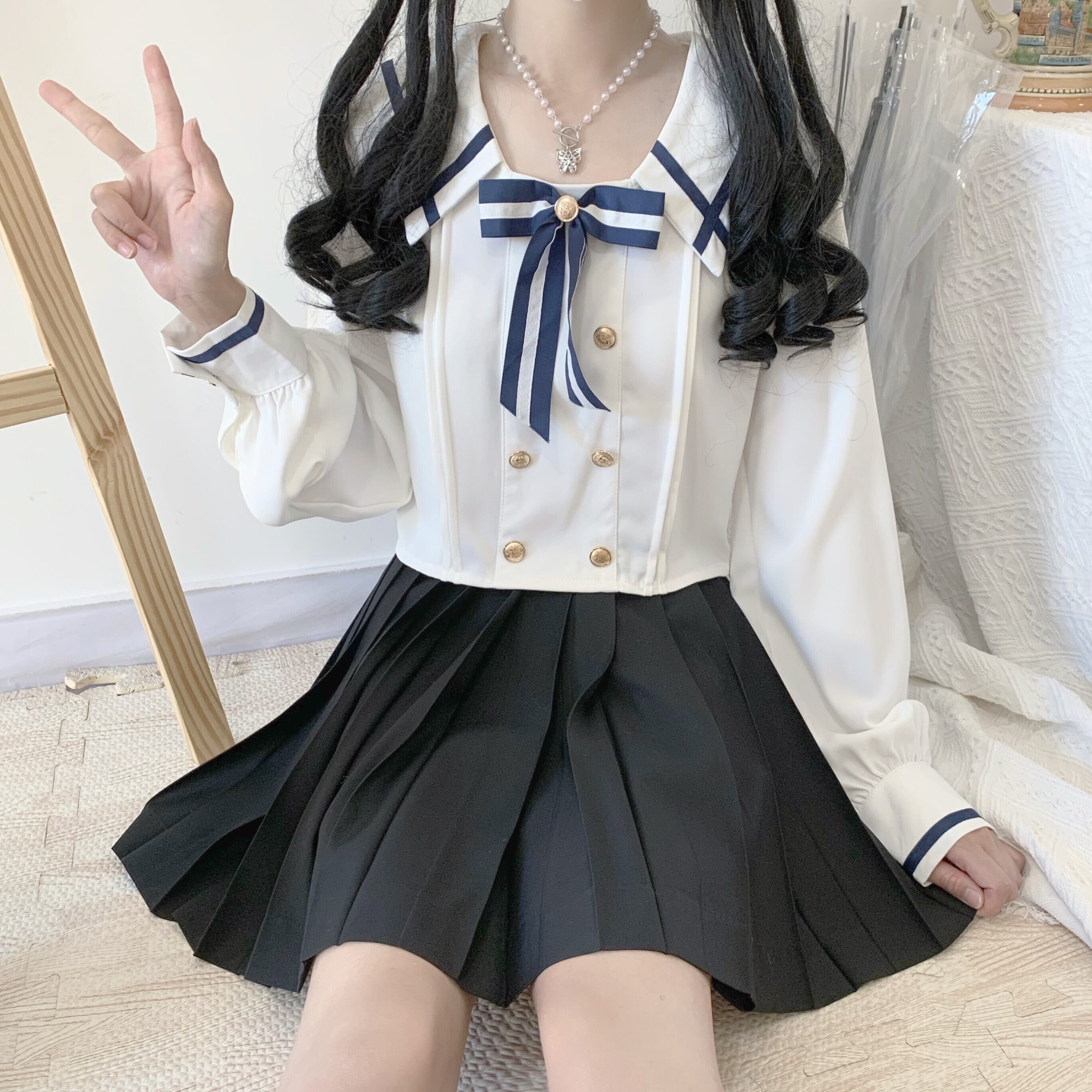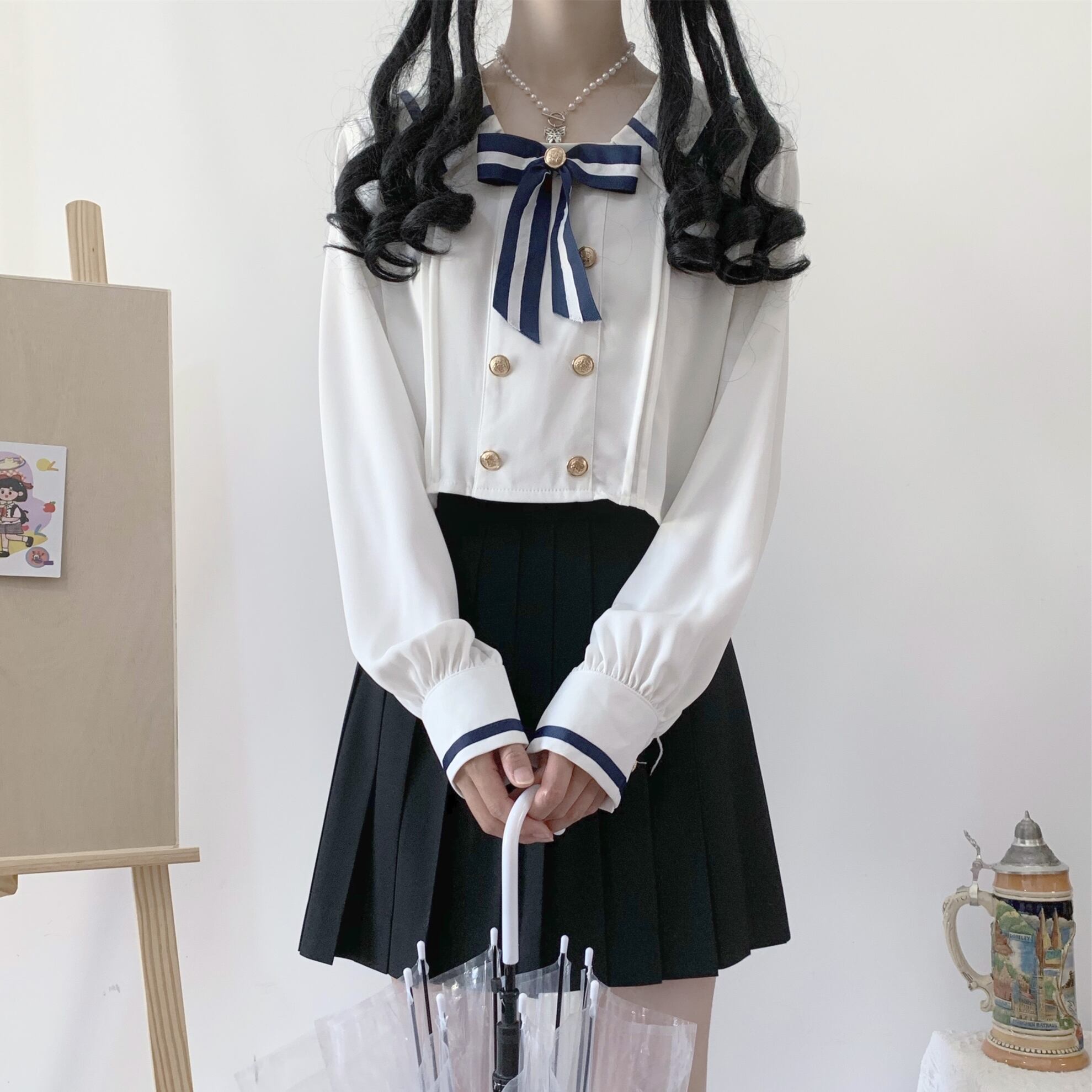 ✞ シャツブラウス大人女子☆♡リボンネイビーショート ロング ✞ゴスロリ SM ミリ 甘ロリ クラロリ 和ロリ エレガント 黒ロリ 姫ロリ 華ロリ BB-BB28456156882