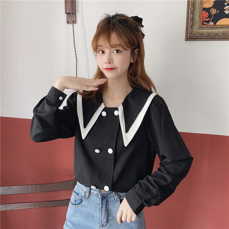 ✞ ♡シャツブラウス大人女子☆カラーダブルブレスト ロング スウィート ✞ゴスロリ SM ミリ 甘ロリ クラロリ 和ロリ エレガント 黒ロリ 姫ロリ 華ロリ BB-BB81410930305