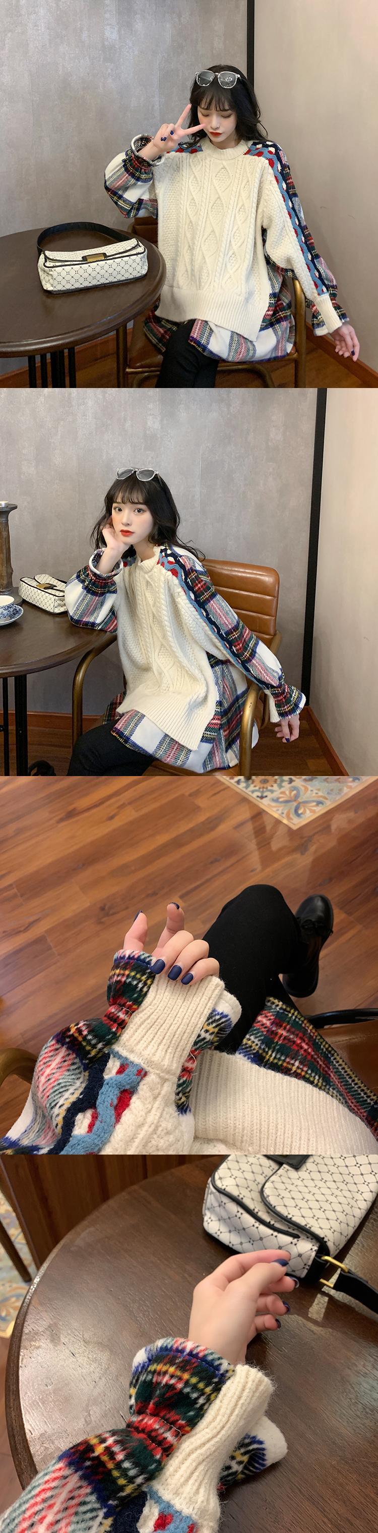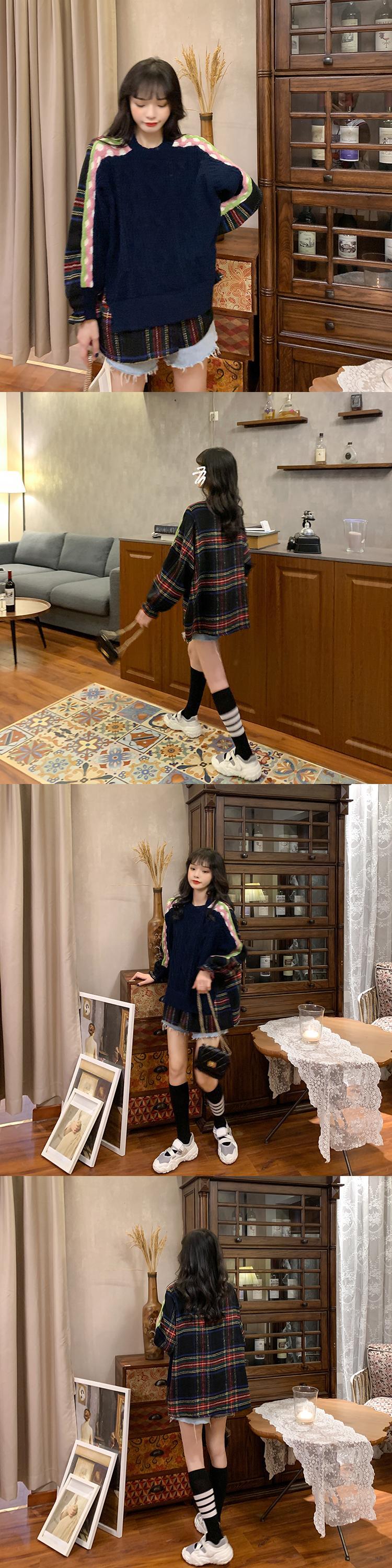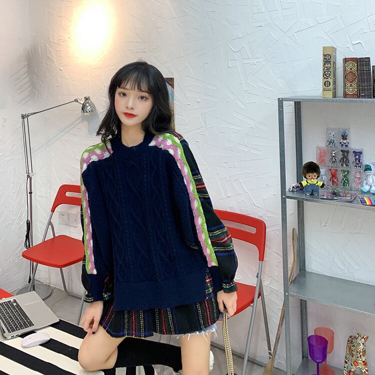 ✞ スタンダードチェック柄セーター カジュアル♡プルオーバー ロング レトロ ステッチ ✞ゴスロリ SM ミリ 甘ロリ クラロリ 和ロリ エレガント 黒ロリ 姫ロリ 華ロリ BB-BB12057754314