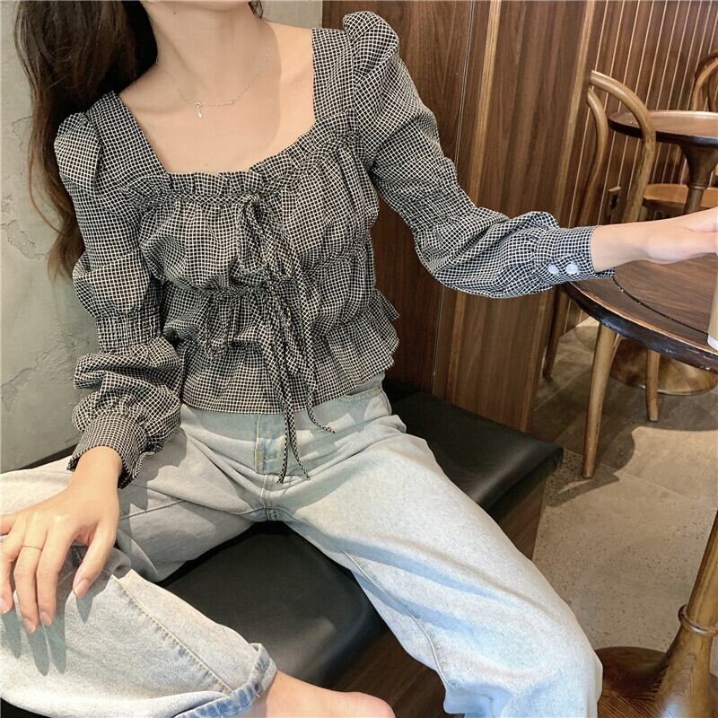 ✞ オータム♡スタンダードシャツブラウスレースショートチェック柄 ロング レトロ スウィート 秋物 スクウェア ✞ゴスロリ SM ミリ 甘ロリ クラロリ 和ロリ エレガント 黒ロリ 姫ロリ 華ロリ BB-BB72707767186