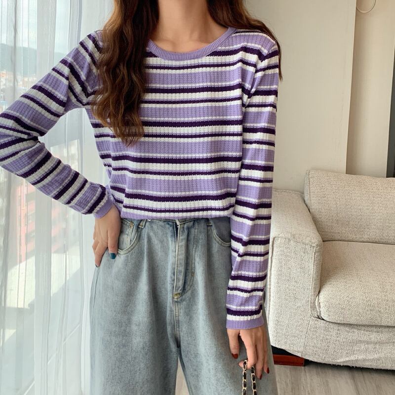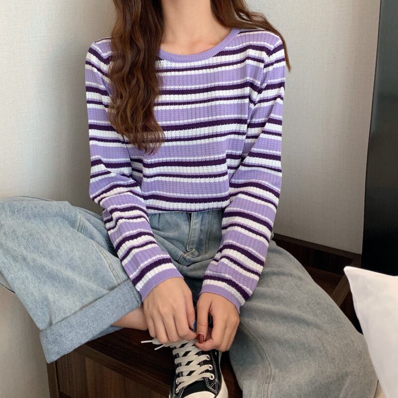 ✞ オータムラウンドネック♥カワイイ♥ストライプニットトップス 大人女子☆ ロング 秋物 ✞ゴスロリ SM ミリ 甘ロリ クラロリ 和ロリ エレガント 黒ロリ 姫ロリ 華ロリ BB-BB60267325855