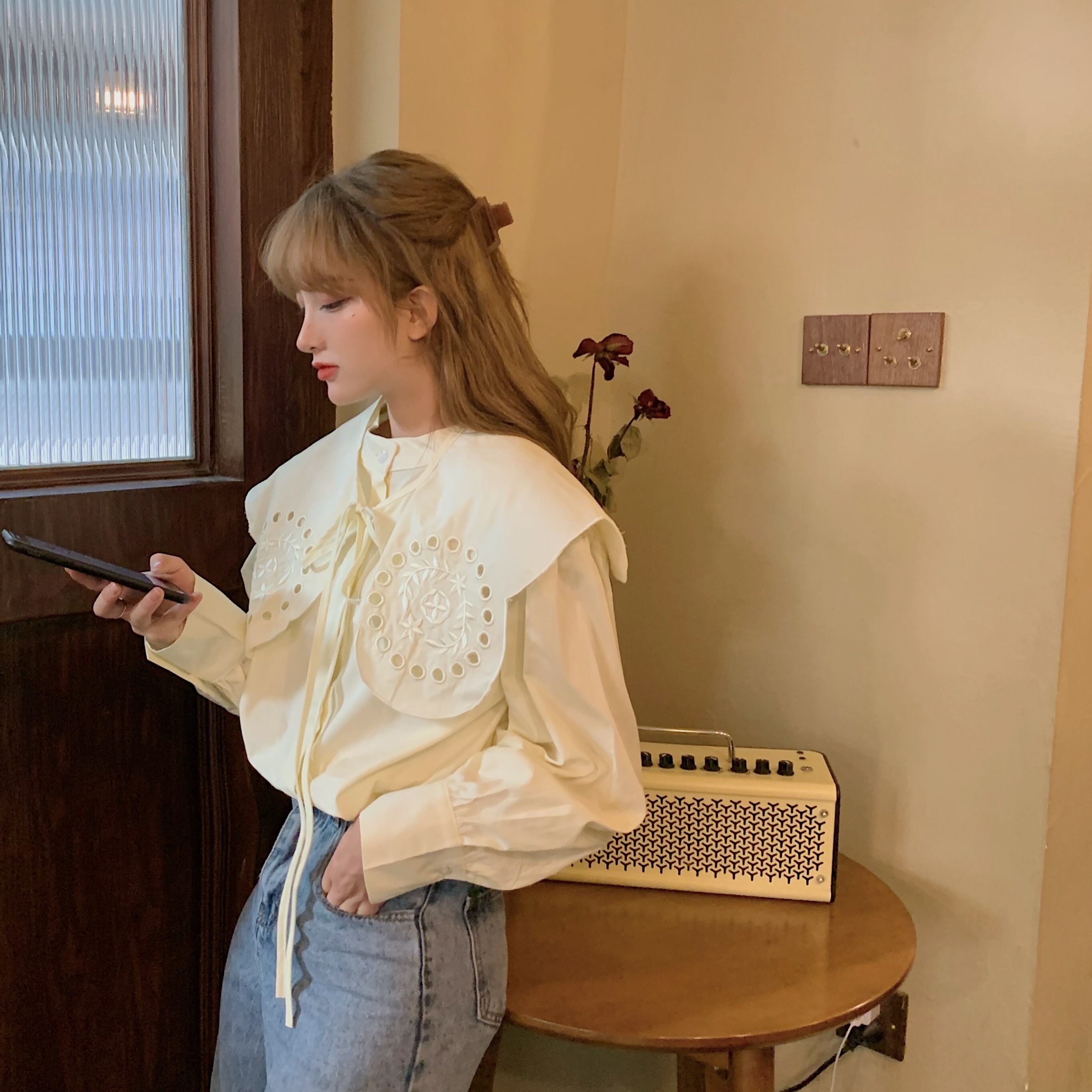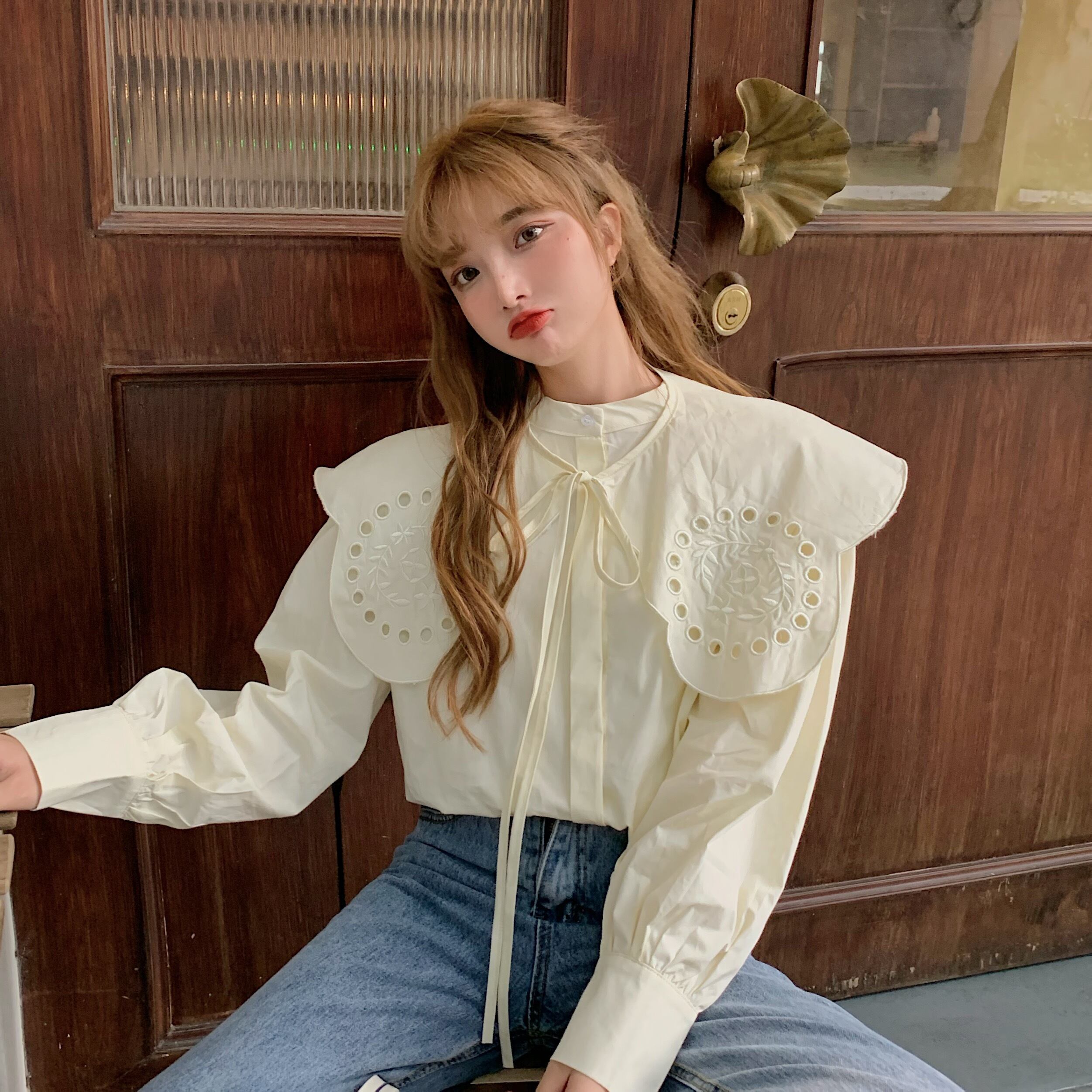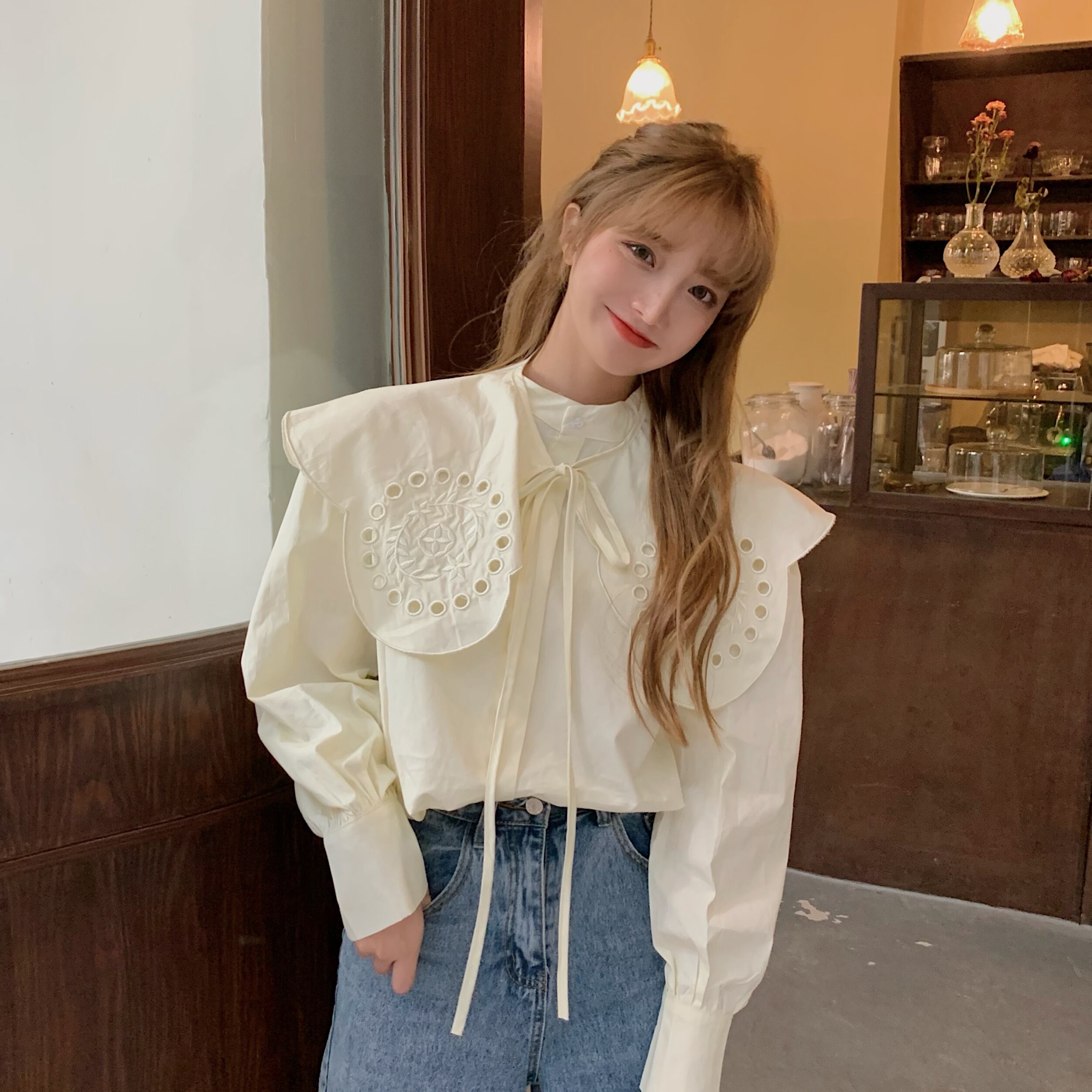 ✞ 刺繍シャツブラウス ロング スウィート ✞ゴスロリ SM ミリ 甘ロリ クラロリ 和ロリ エレガント 黒ロリ 姫ロリ 華ロリ BB-BB33066993925