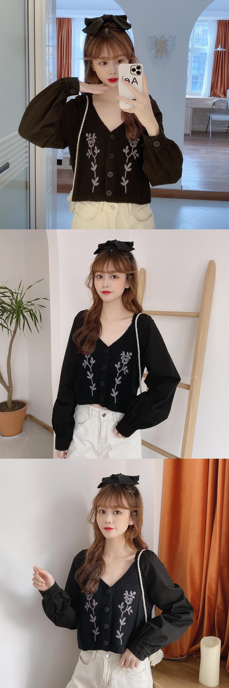 ✞ 刺繍シャツブラウススリーブニットカーディガン ロング ステッチ ✞ゴスロリ SM ミリ 甘ロリ クラロリ 和ロリ エレガント 黒ロリ 姫ロリ 華ロリ BB-BB6322069561