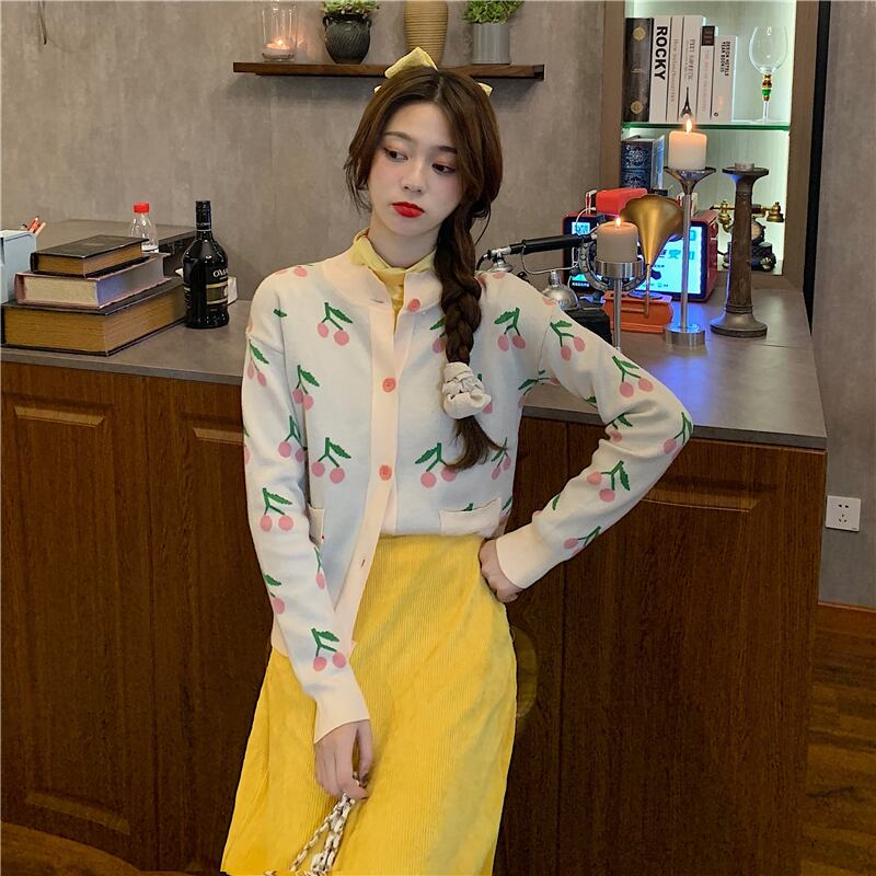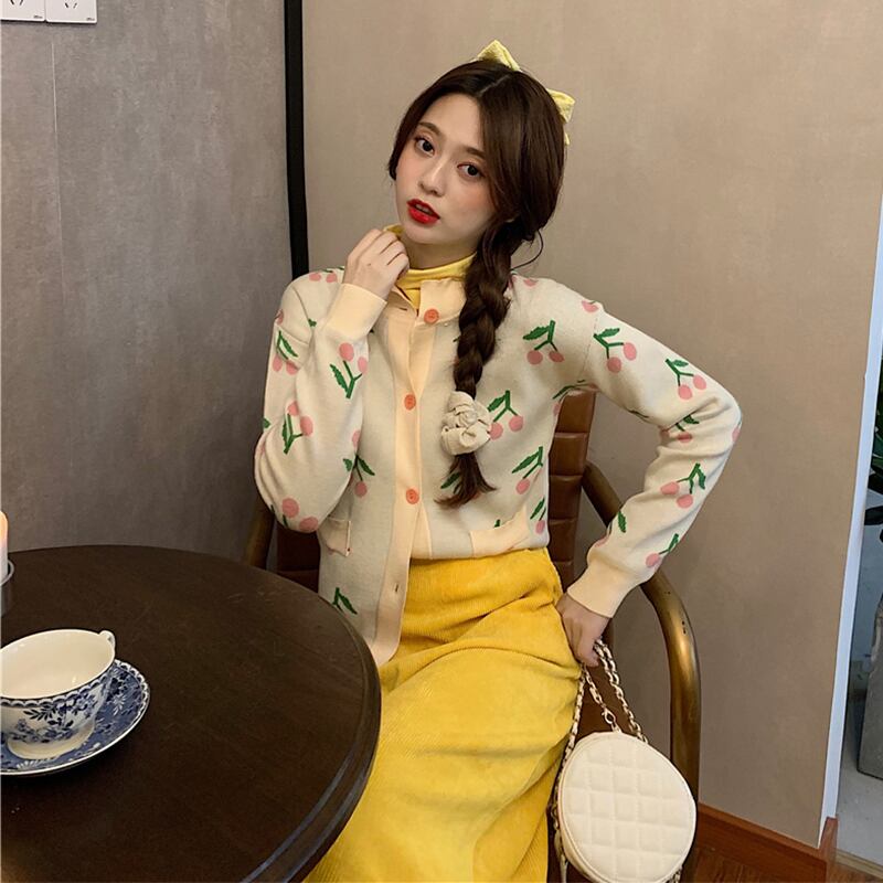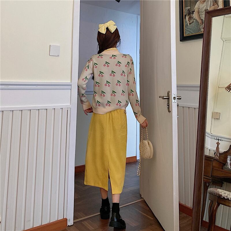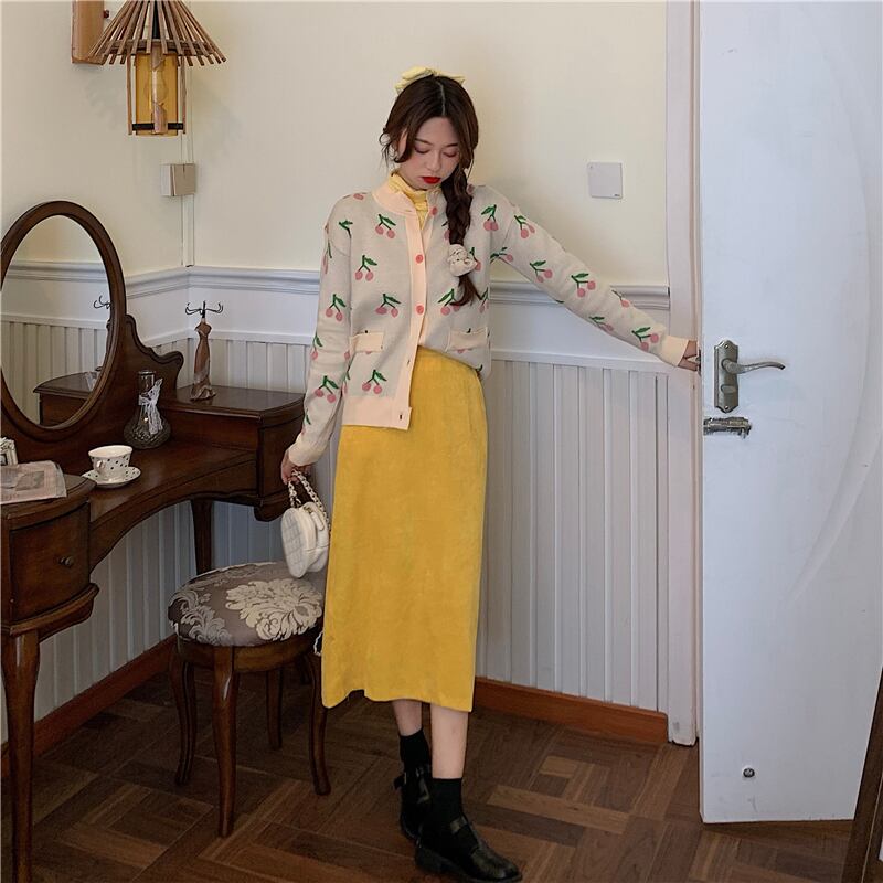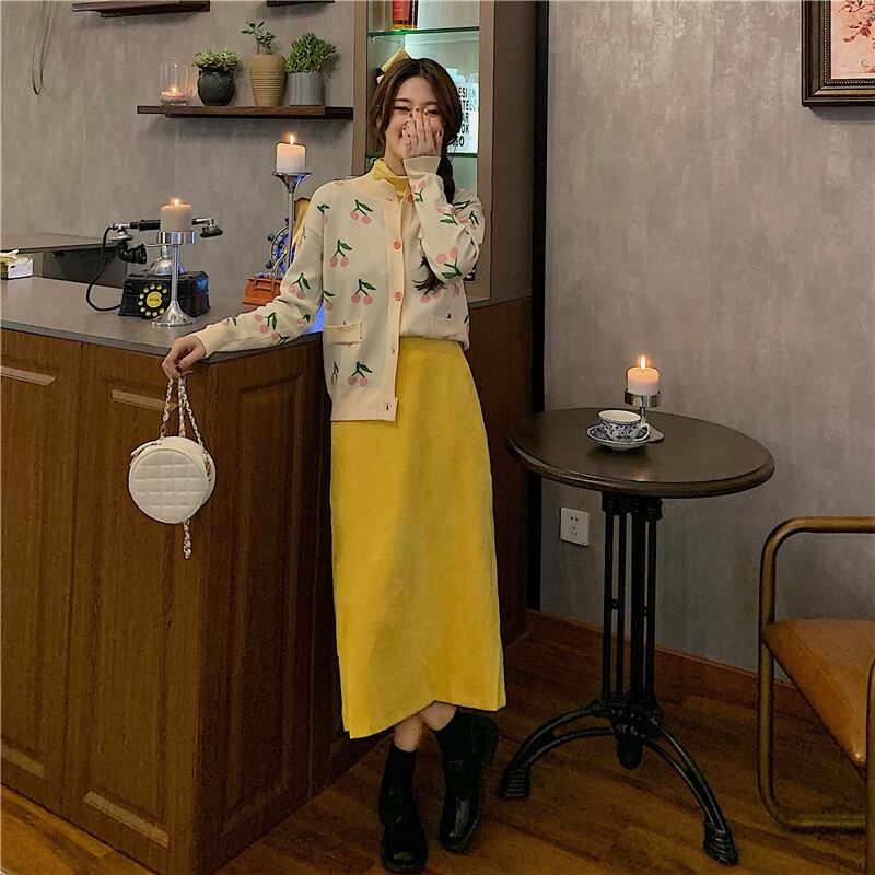 色:ニットジャケットシングルピース,黄色いボトムスシャツワンピース,イエローハーフスカートワンピース