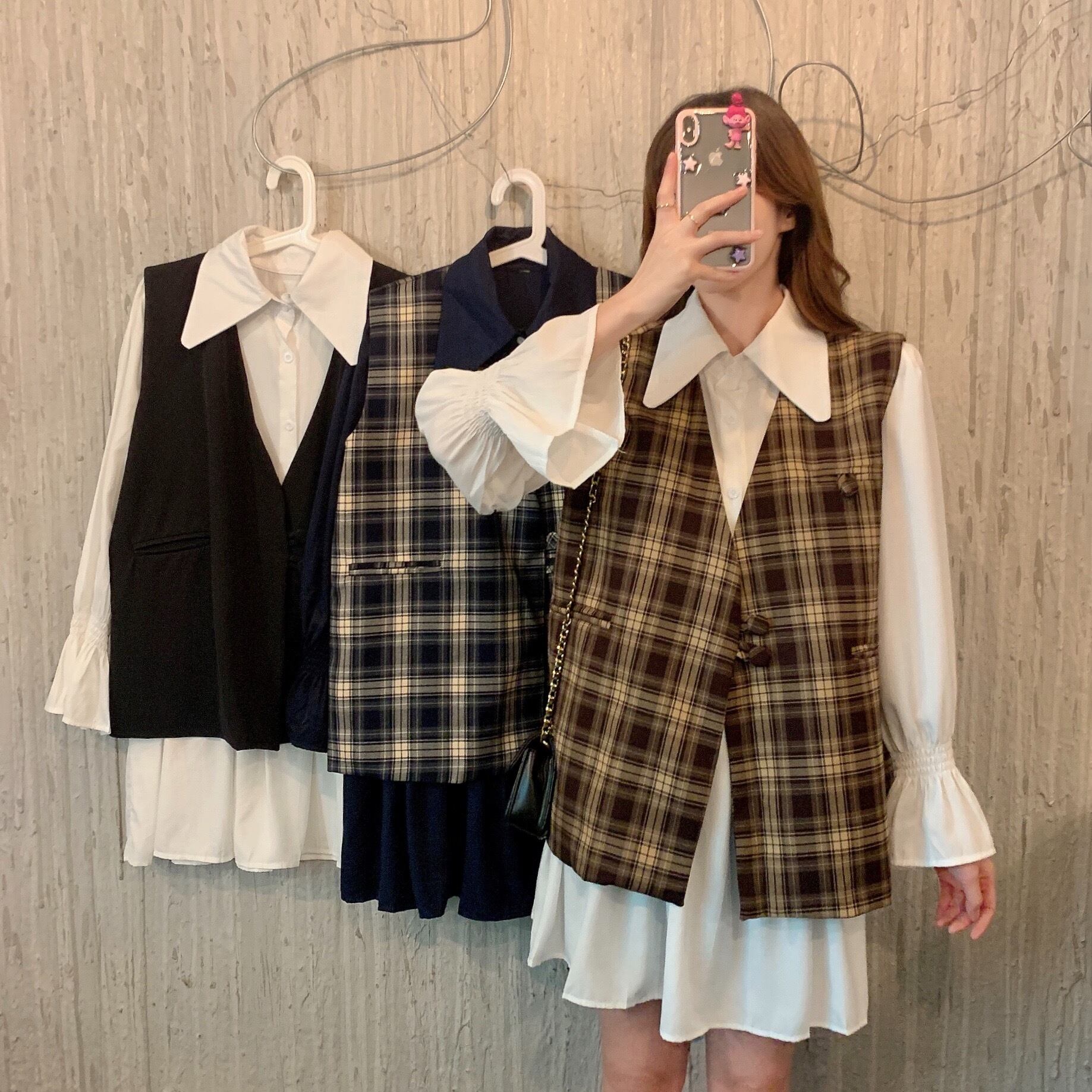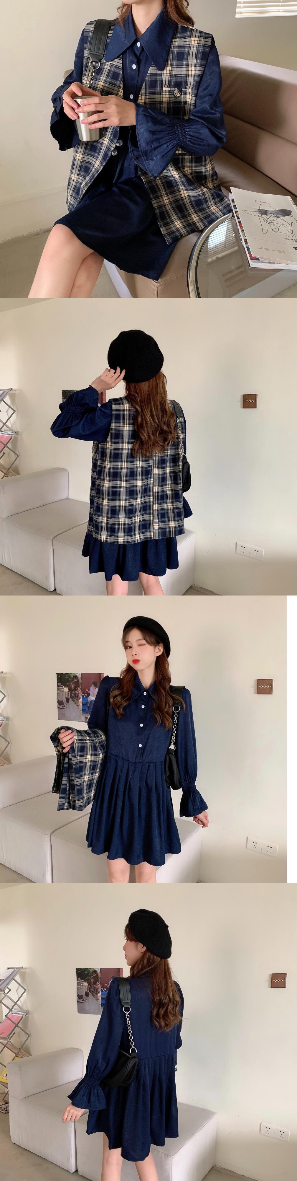 種類 サイズ:ワンサイズ, 色:ブルーチェックベストシングルピース サイズ:ワンサイズ, 色:アプリコットチェックベストシングルピース サイズ:ワンサイズ, 色:ブラックベストワンピース サイズ:ワンサイズ, 色:アプリコットシャツワンピース サイズ:ワンサイズ, 色:青いシャツ