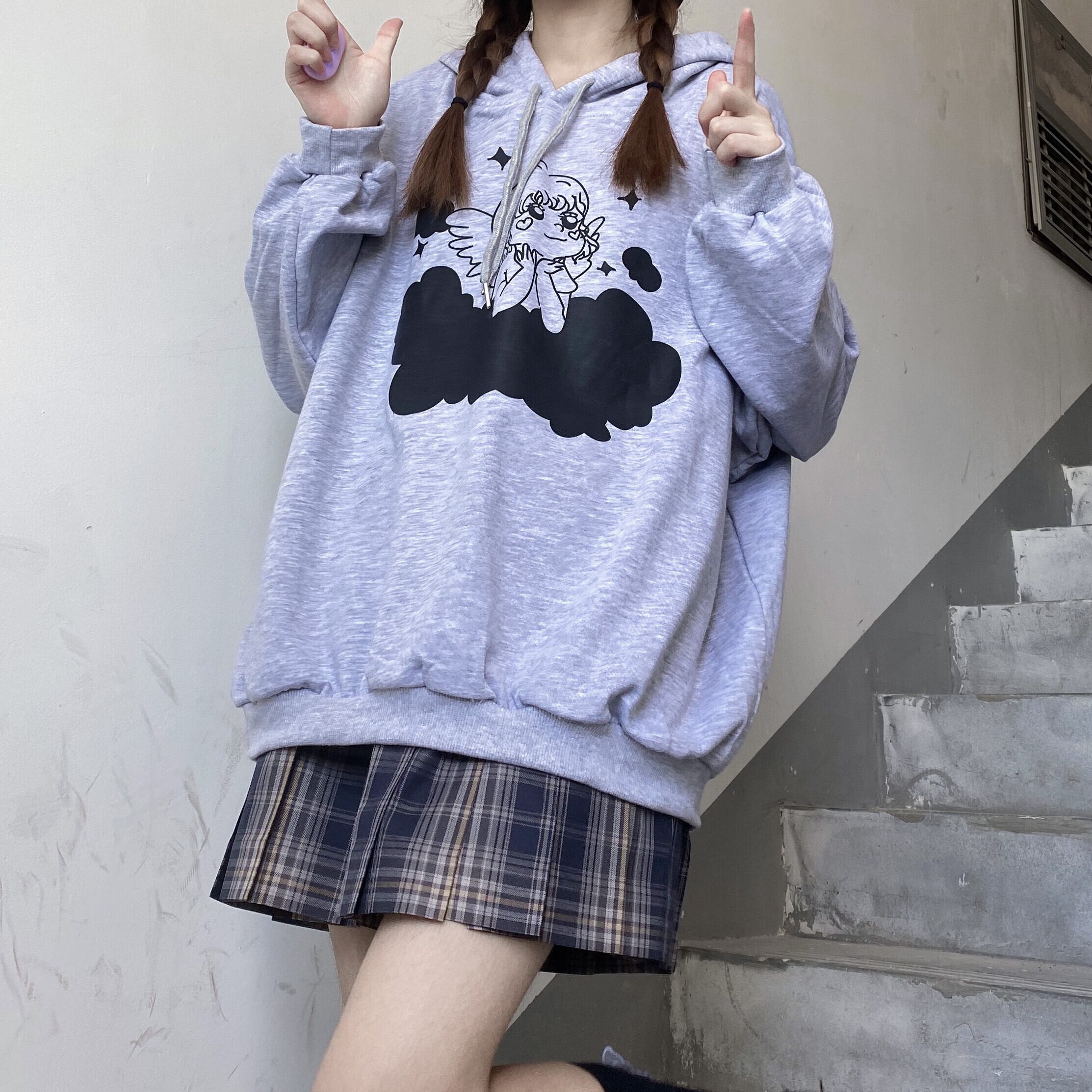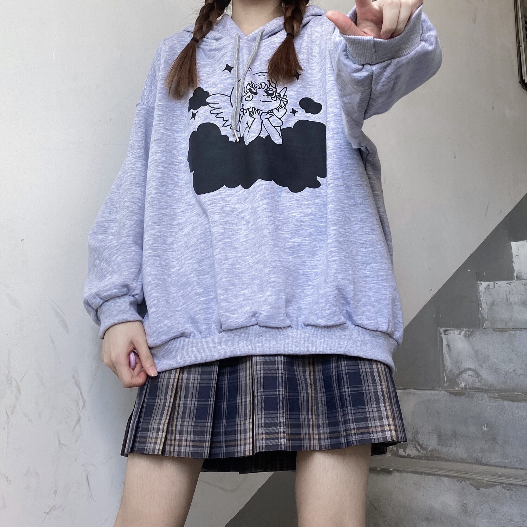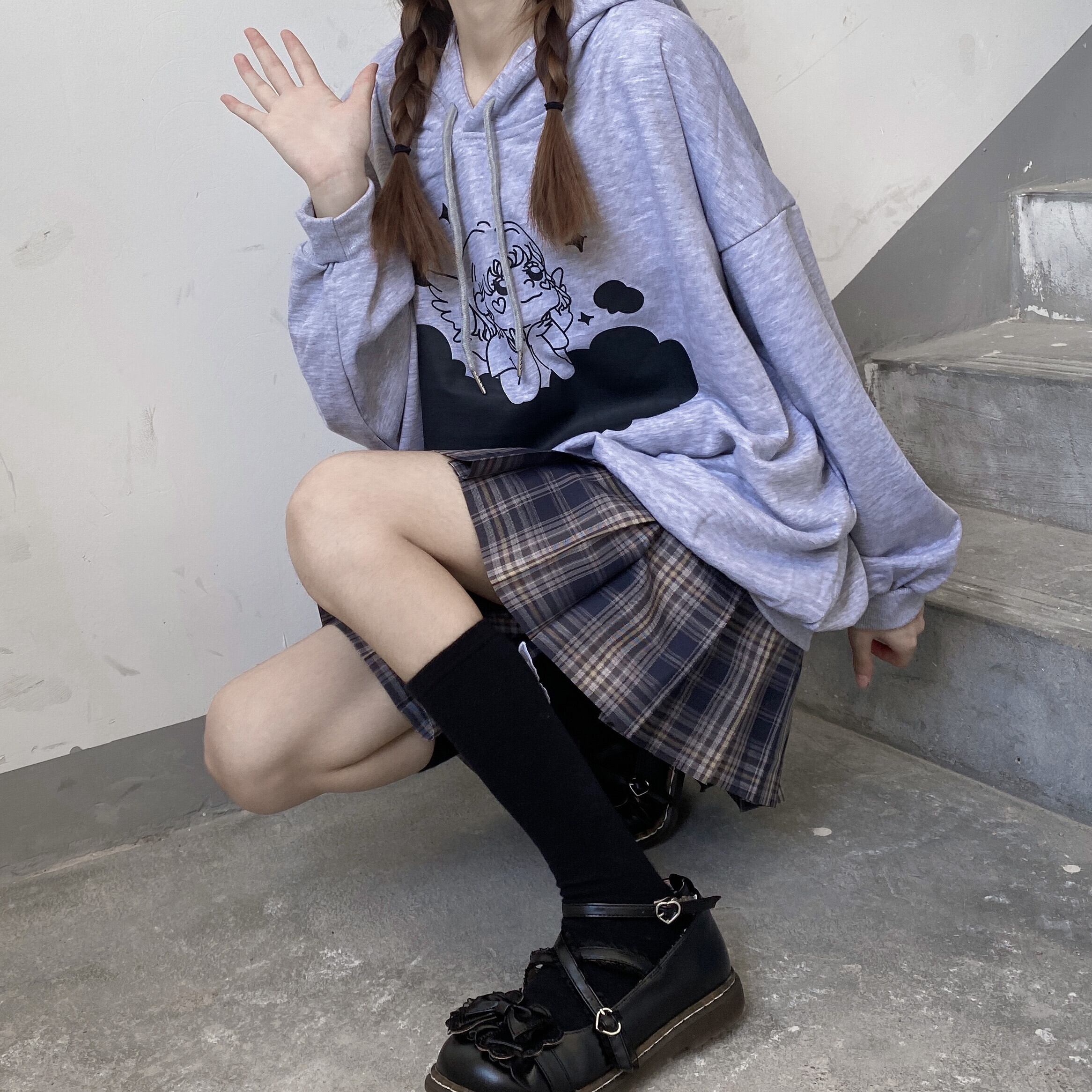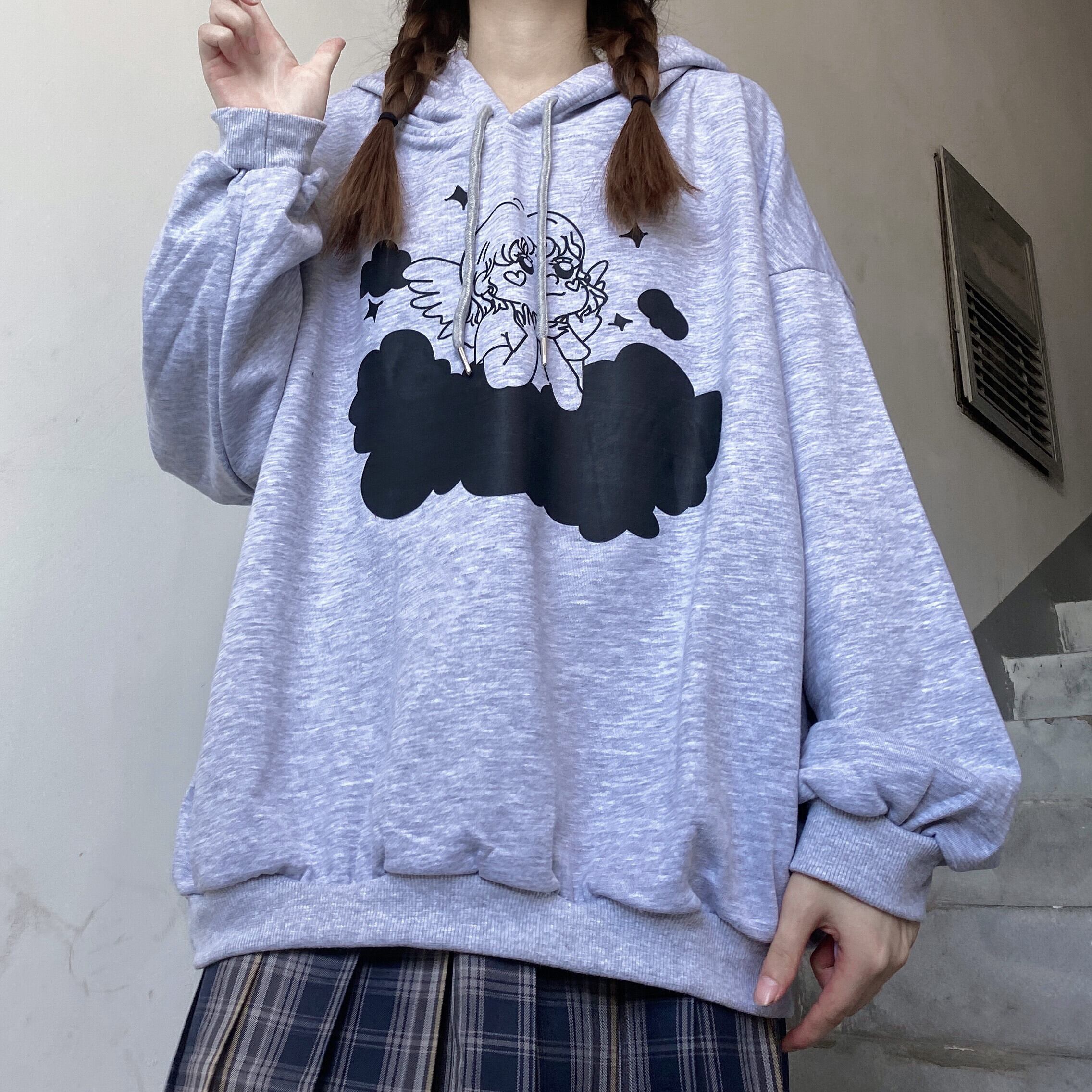 ✞ ♡フードセーター 大人女子☆プリント柄プルオーバー トップス ロング ガーリー ✞ゴスロリ SM ミリ 甘ロリ クラロリ 和ロリ エレガント 黒ロリ 姫ロリ 華ロリ BB-BB9665762973