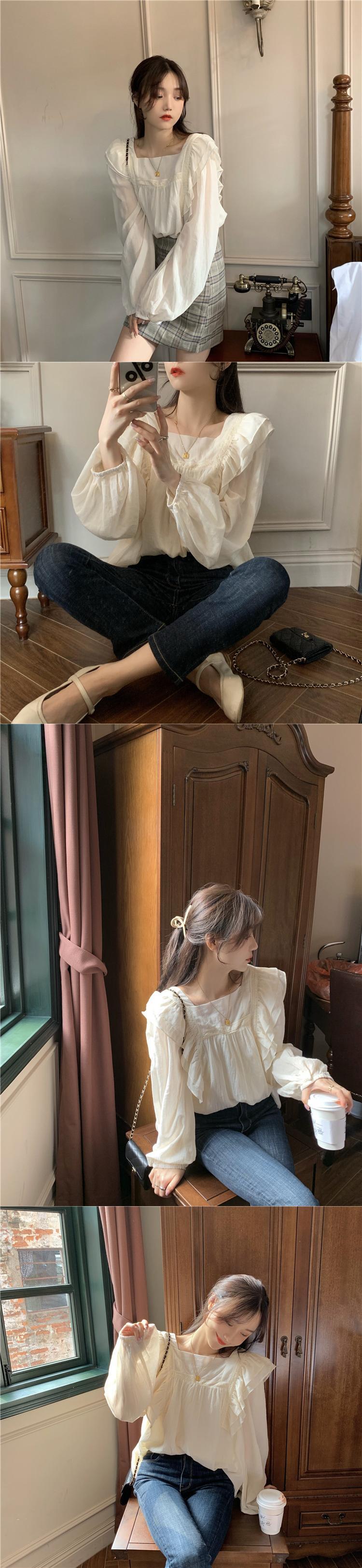 ✞ ラッフルスリーブシャツブラウス スウィート スクウェア ステッチ ✞ゴスロリ SM ミリ 甘ロリ クラロリ 和ロリ エレガント 黒ロリ 姫ロリ 華ロリ BB-BB43148756200