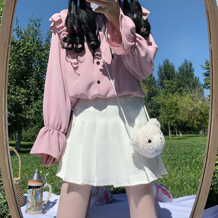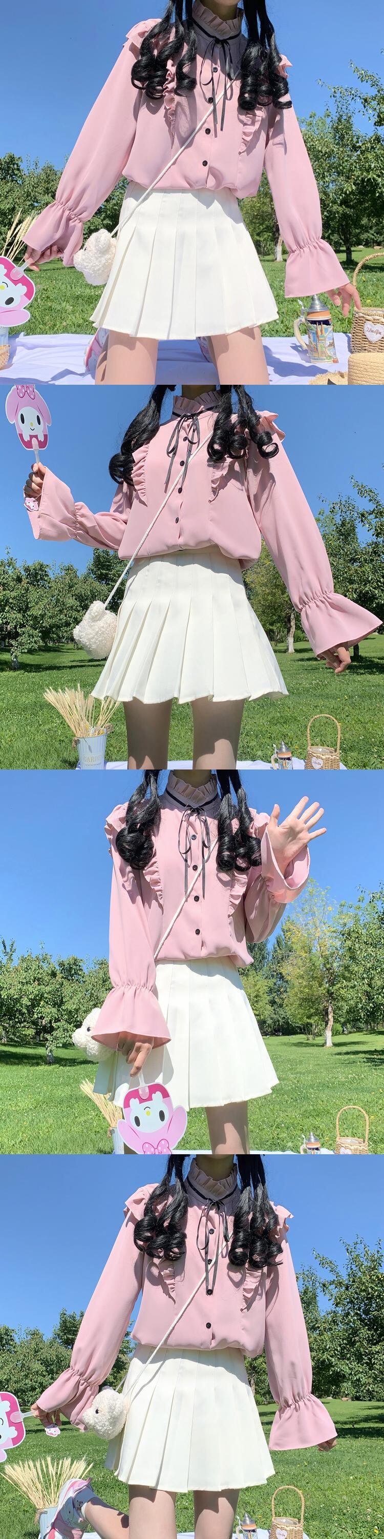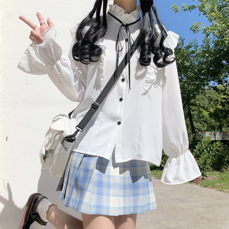 ✞ ♡リボン白シャツブラウス ホワイト ✞ゴスロリ SM ミリ 甘ロリ クラロリ 和ロリ エレガント 黒ロリ 姫ロリ 華ロリ BB-BB79912589475