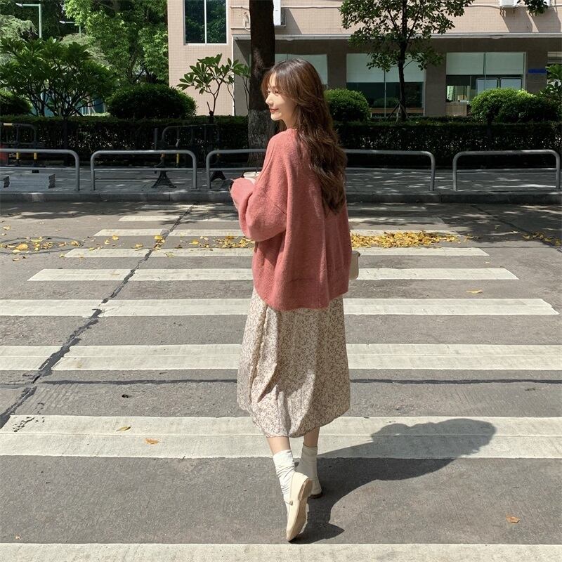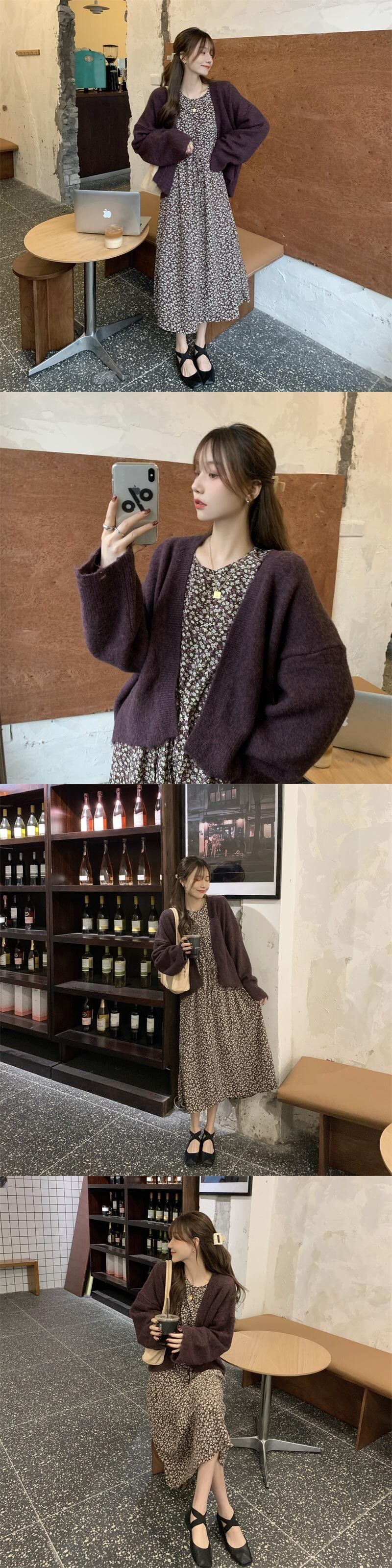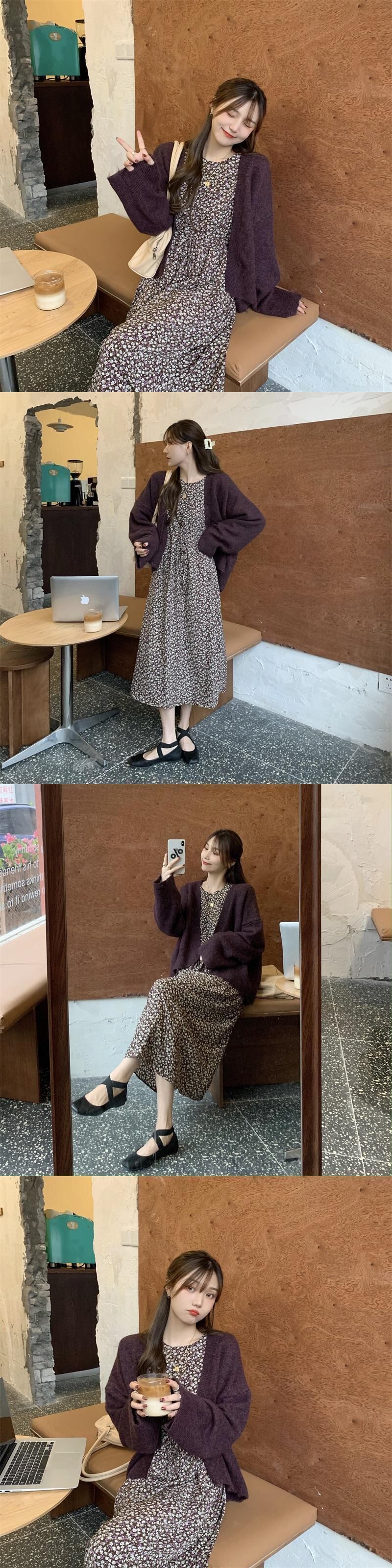 色:セーターシングル,パープルセーターシングル,白い花柄スカートワンピース,ブラックフローラルワンピース
