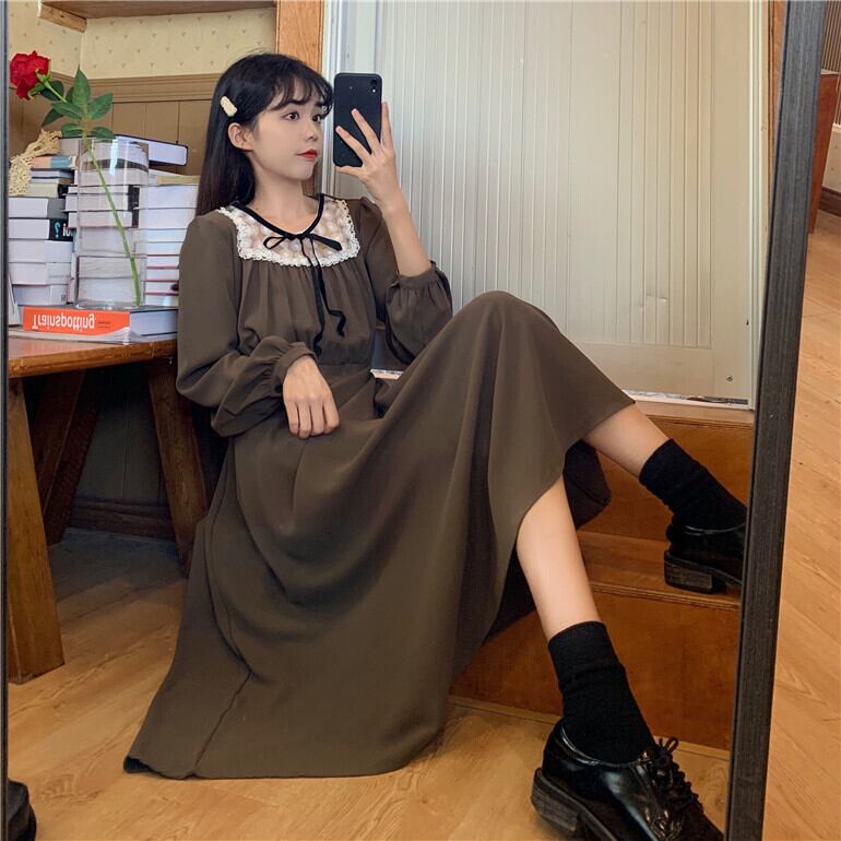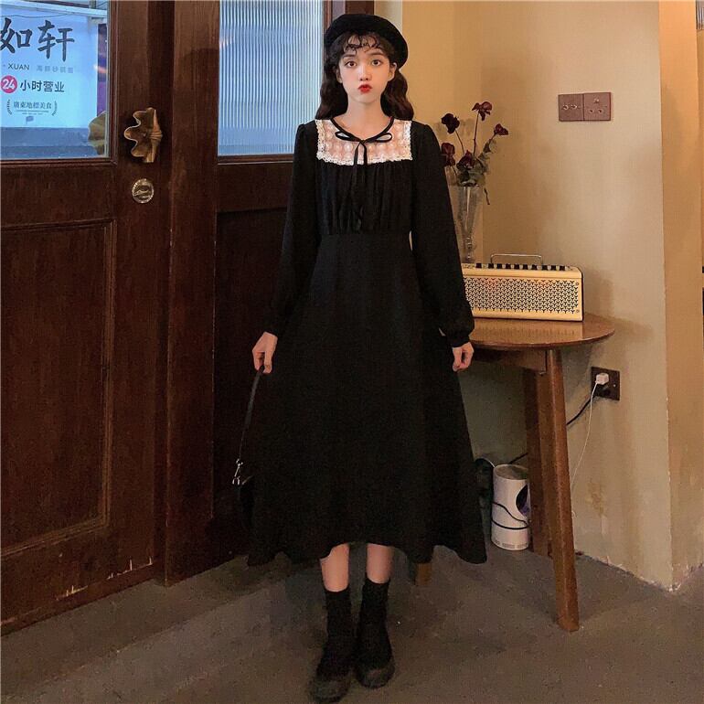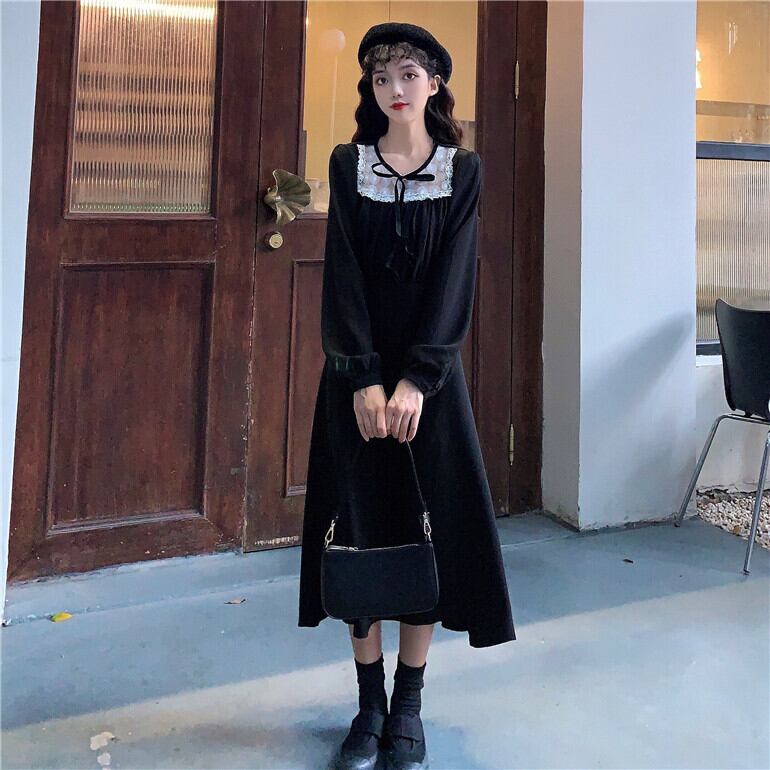 ✞ ラウンドネックリボンレースハイウェスト♥カワイイ♥ ロング スウィート ステッチ ✞ゴスロリ SM ミリ 甘ロリ クラロリ 和ロリ エレガント 黒ロリ 姫ロリ 華ロリ BB-BB68225977328