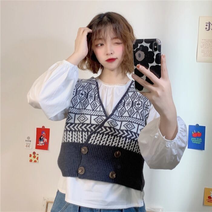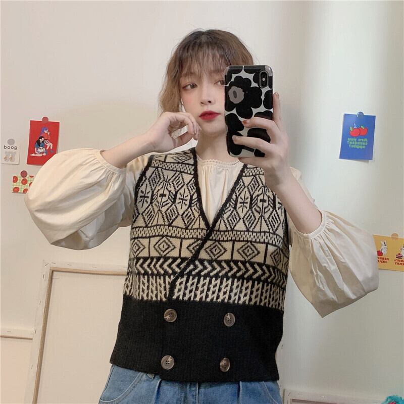 ✞ スタンダード♡Vネックニットカーディガン大人女子☆ラウンドネックスリーブ長袖シャツブラウス ロング レトロ ✞ゴスロリ SM ミリ 甘ロリ クラロリ 和ロリ エレガント 黒ロリ 姫ロリ 華ロリ BB-BB17857911269