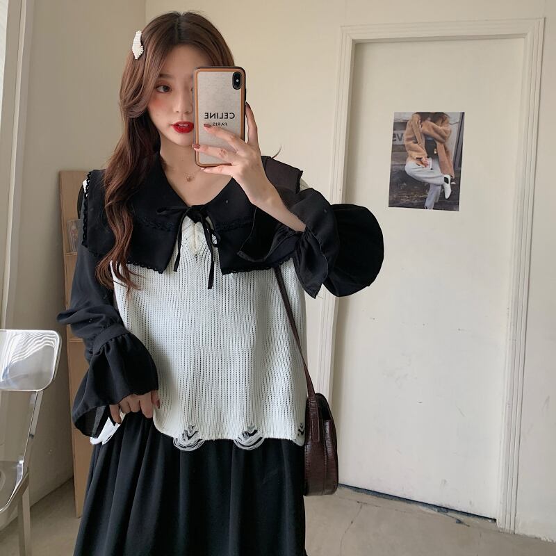 ✞ スタンダードスカート ♡ニットノースリーブ レトロ スウィート ✞ゴスロリ SM ミリ 甘ロリ クラロリ 和ロリ エレガント 黒ロリ 姫ロリ 華ロリ BB-BB61616878769