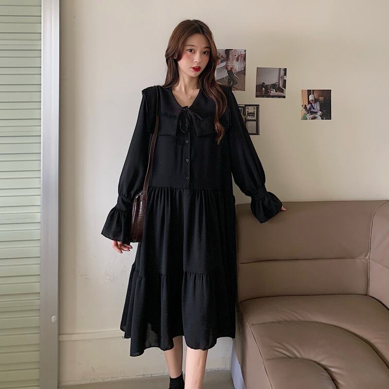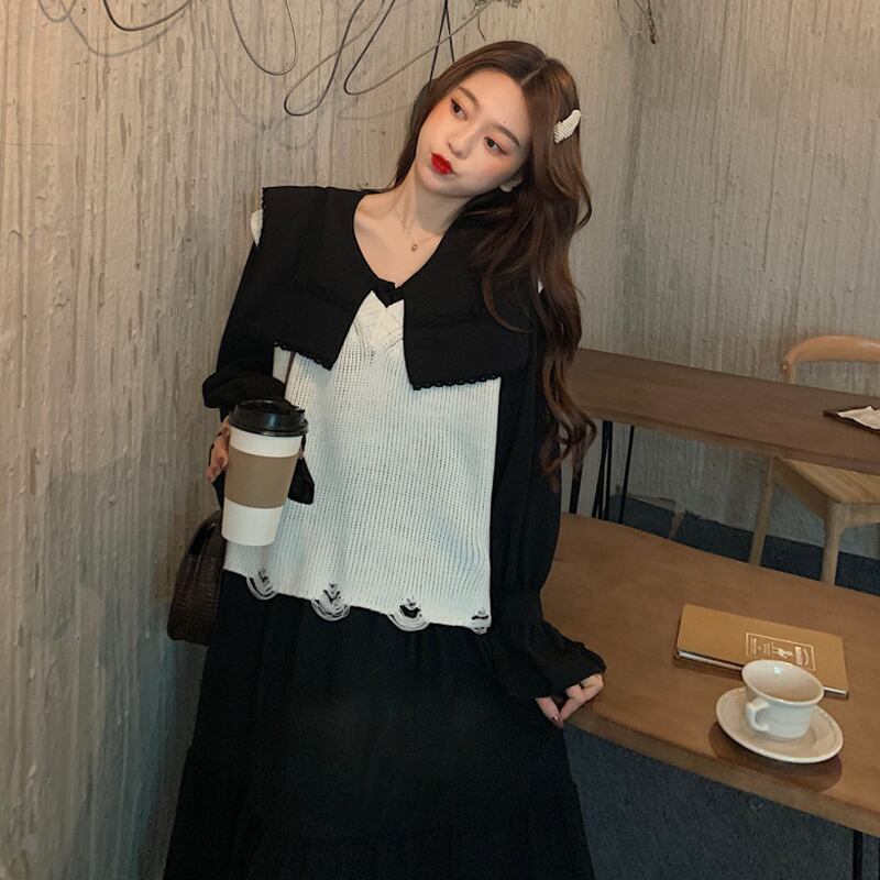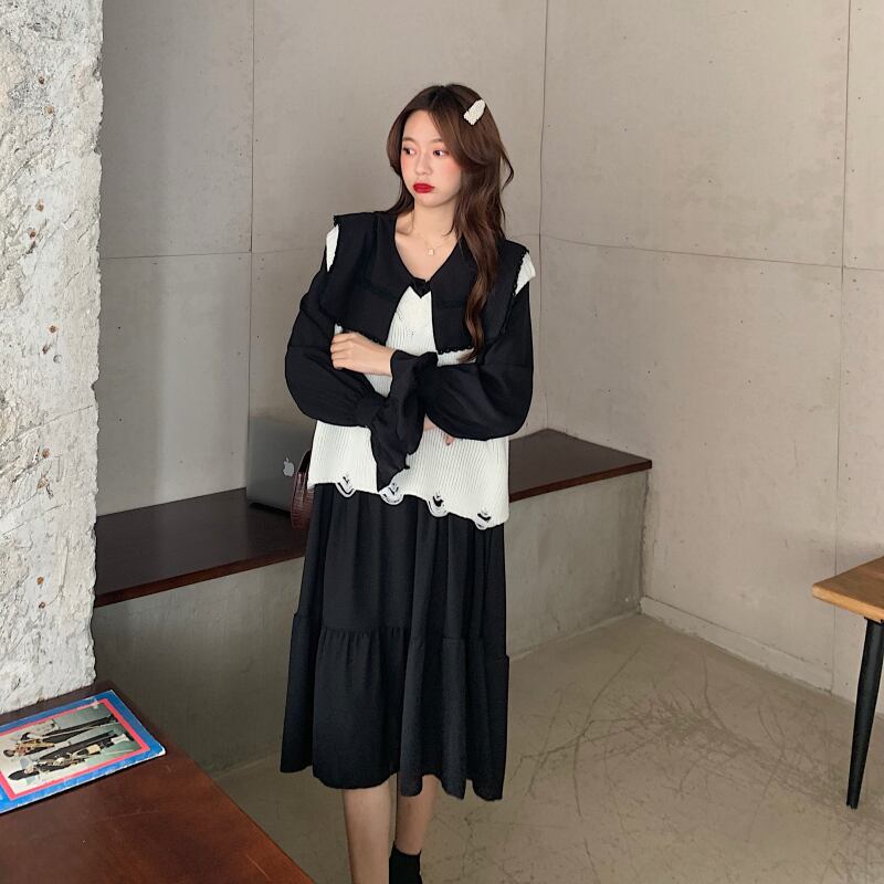色:ブラックワンピース,白いベストワンピース