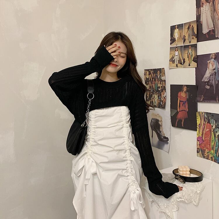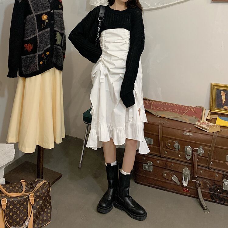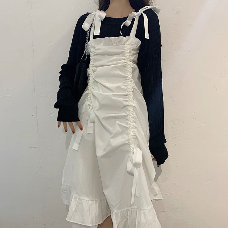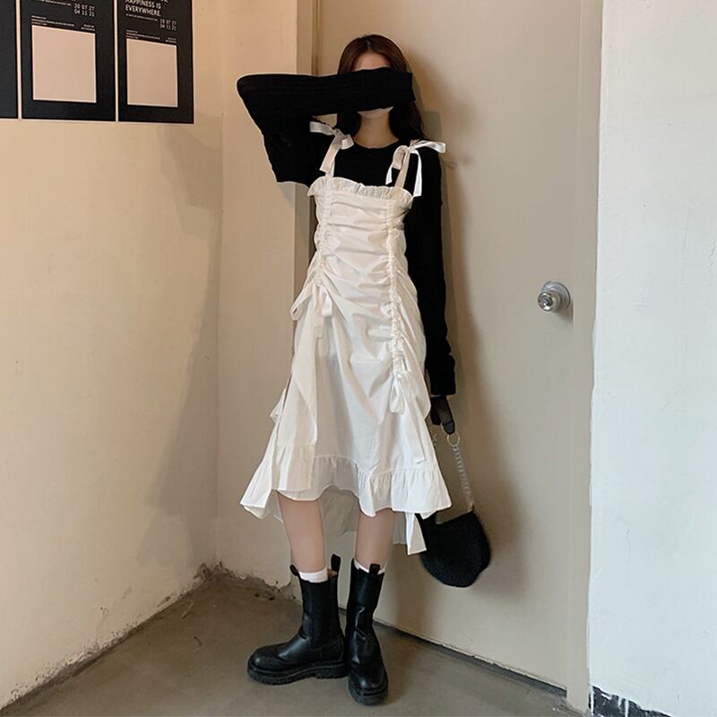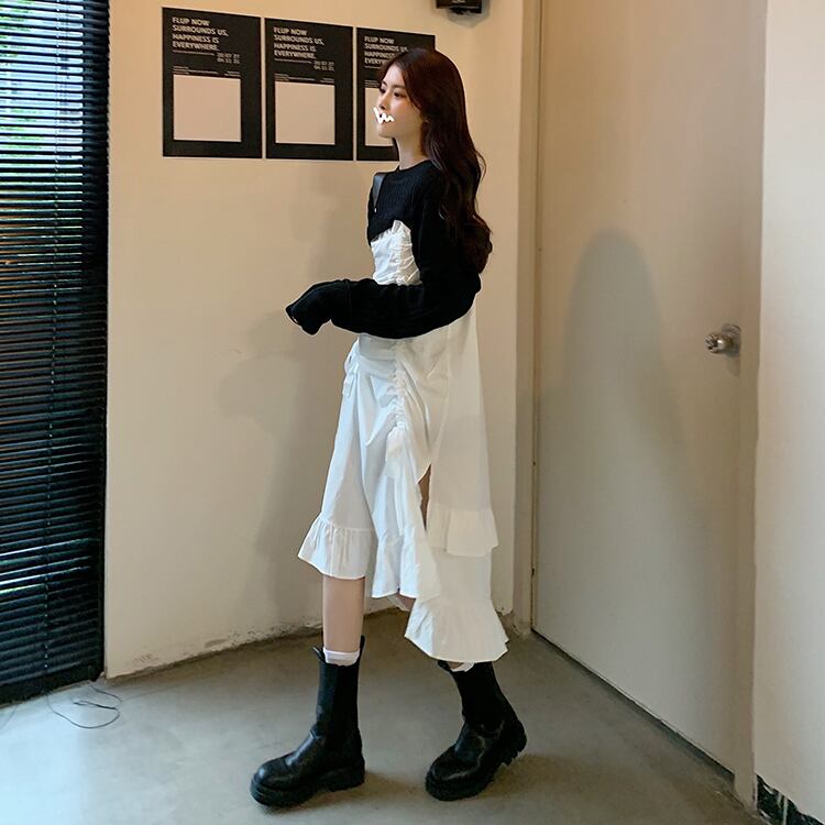 色:黒セーターシングル,ホワイトサスペンダースカートシングル