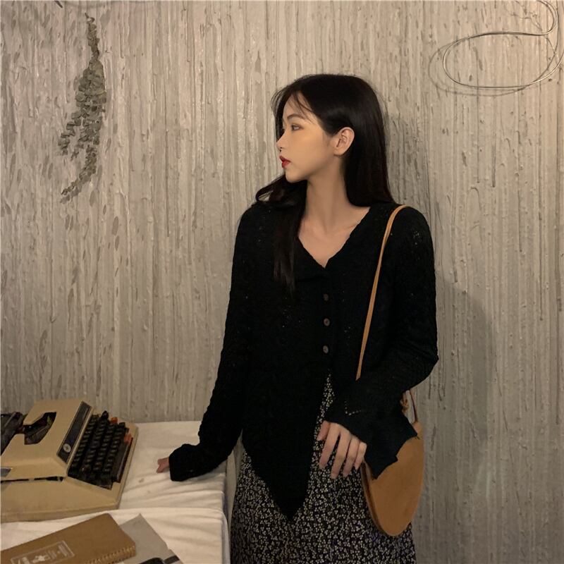 ✞ ♡アシンメトリーニットカーディガンジャケット スタンダード花柄スカート ロング レトロ ✞ゴスロリ SM ミリ 甘ロリ クラロリ 和ロリ エレガント 黒ロリ 姫ロリ 華ロリ BB-BB53561555268