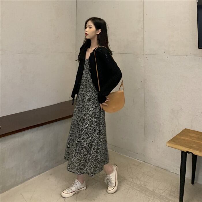 色:白いセーターワンピース,黒のセーターワンピース,黒花柄スカートワンピース