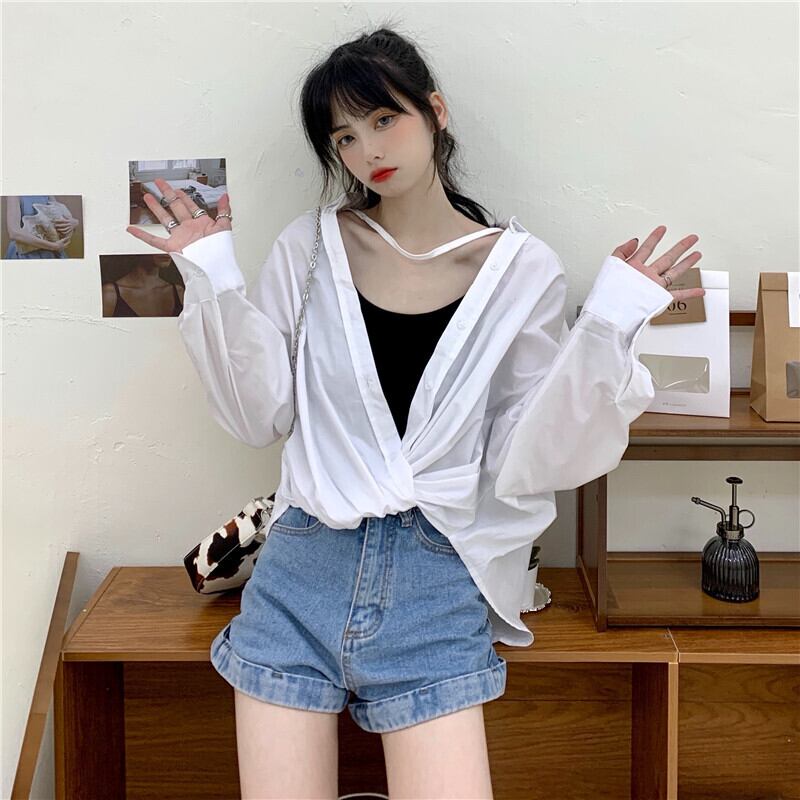 ✞ ♡ラウンドネック長袖スリーブ白シャツブラウス ロング ホワイト ✞ゴスロリ SM ミリ 甘ロリ クラロリ 和ロリ エレガント 黒ロリ 姫ロリ 華ロリ BB-BB51112613715