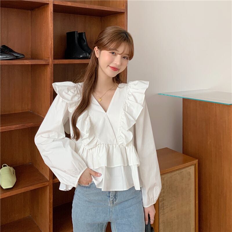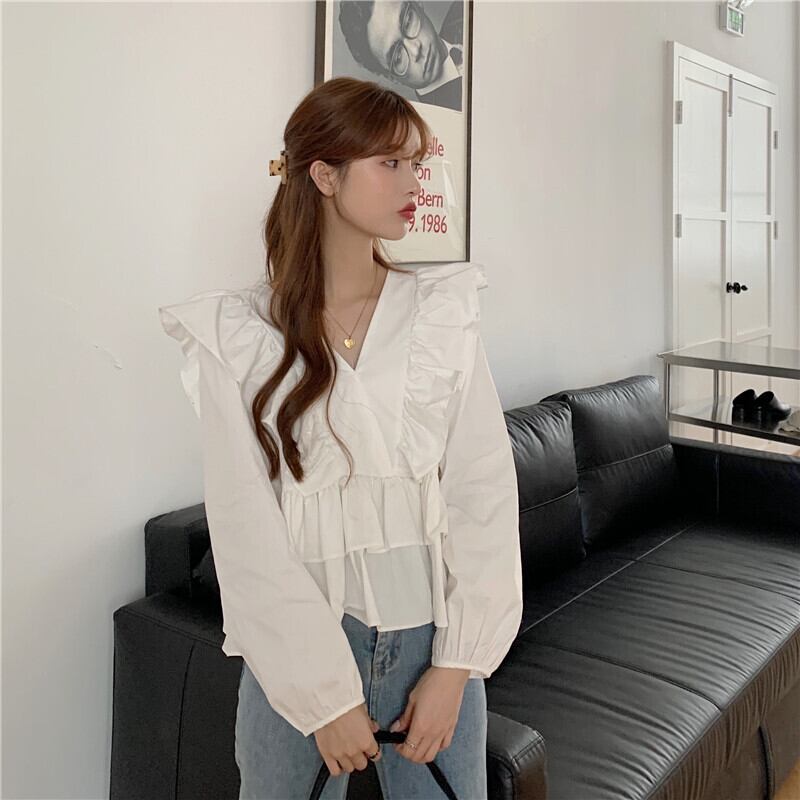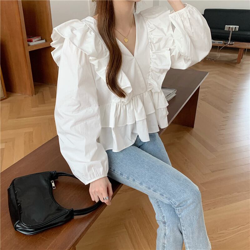 ✞ ♡Vネックスリーブシャツブラウス大人女子☆トップス ロング ランタンスリーブ スウィート ✞ゴスロリ SM ミリ 甘ロリ クラロリ 和ロリ エレガント 黒ロリ 姫ロリ 華ロリ BB-BB46104542710