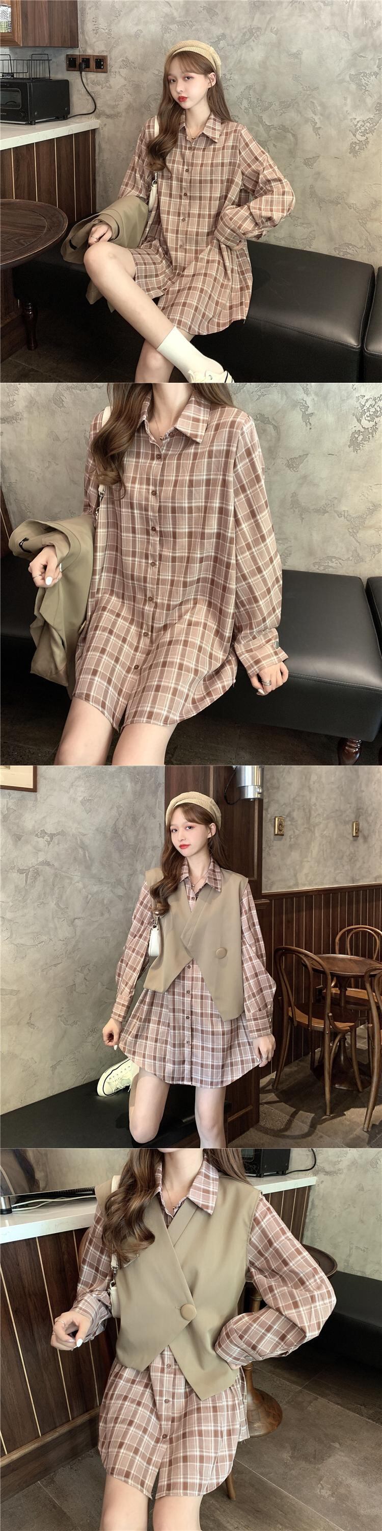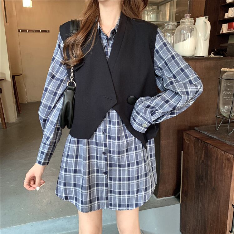 色:ネイビーブルーベストワンピース,コーヒーカラーベストワンピース,ネイビーブルーシャツシングル,コーヒーカラーシャツシングル