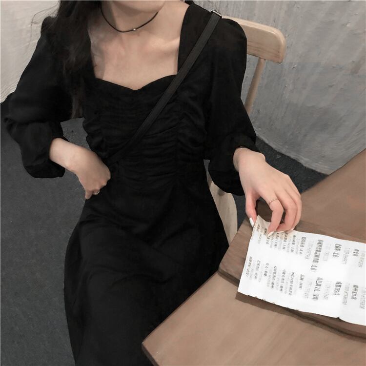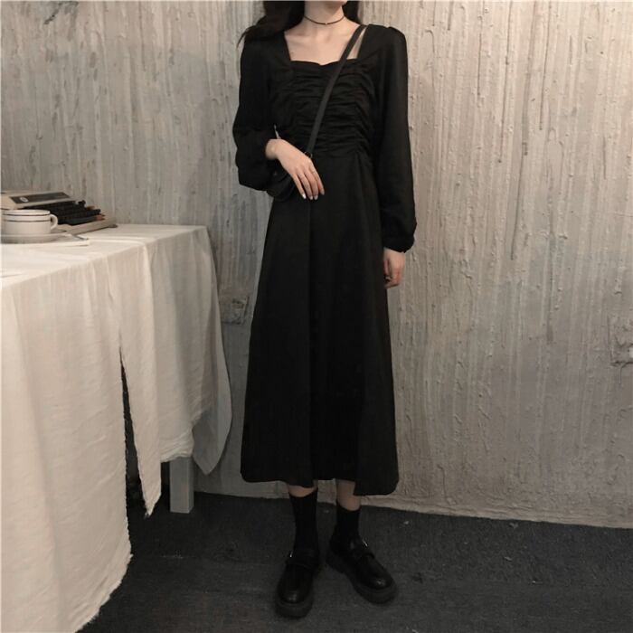 ✞ スタンダードブラック★♥カワイイ♥長袖スリーブ ロング レトロ スクウェア ✞ゴスロリ SM ミリ 甘ロリ クラロリ 和ロリ エレガント 黒ロリ 姫ロリ 華ロリ BB-BB16180219090