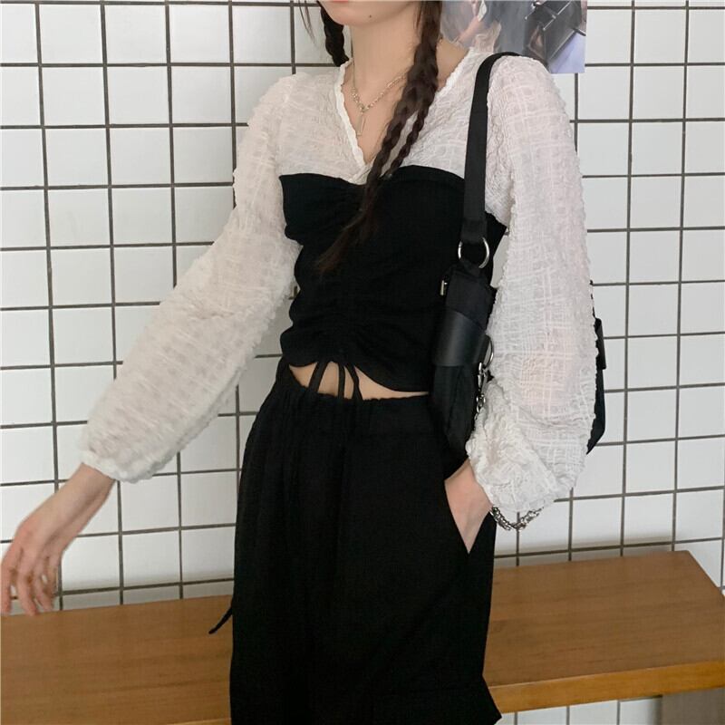 ✞ ショートギャザースリーブトップス スリムシャツブラウス スウィート ステッチ ✞ゴスロリ SM ミリ 甘ロリ クラロリ 和ロリ エレガント 黒ロリ 姫ロリ 華ロリ BB-BB42639361046