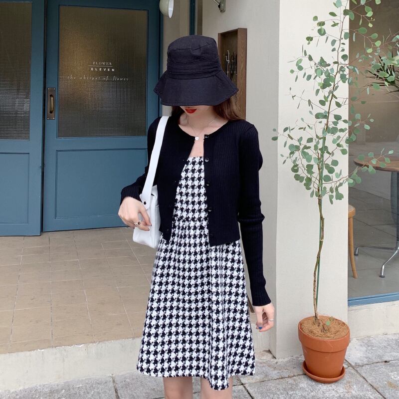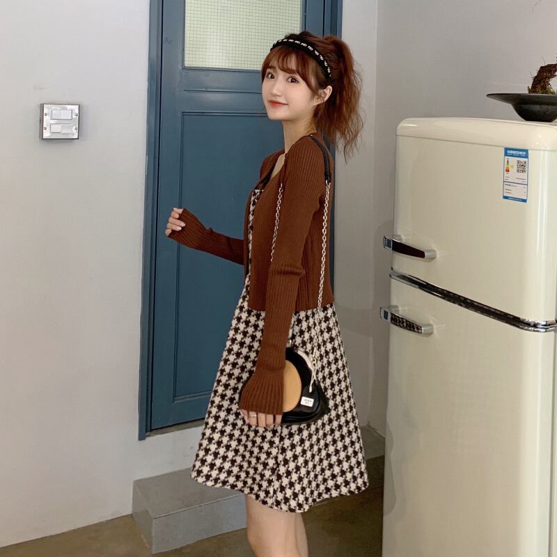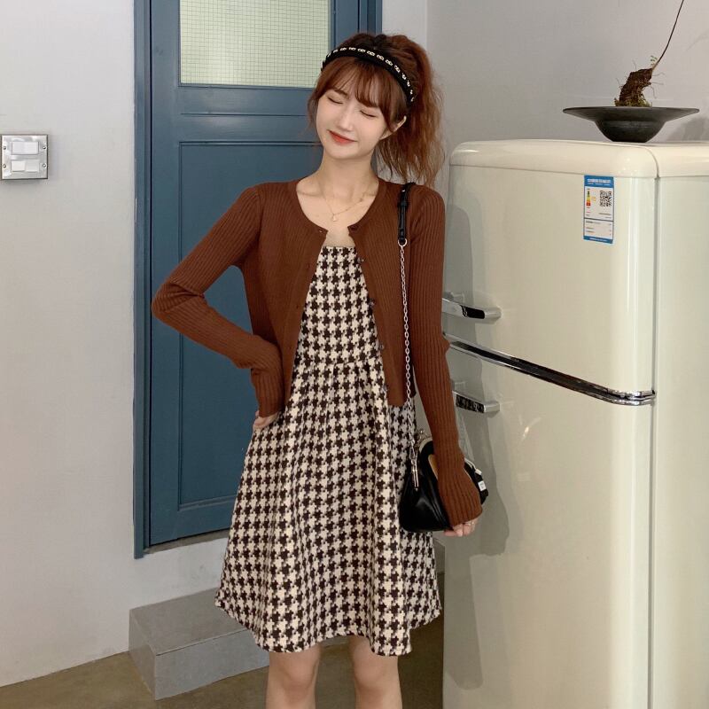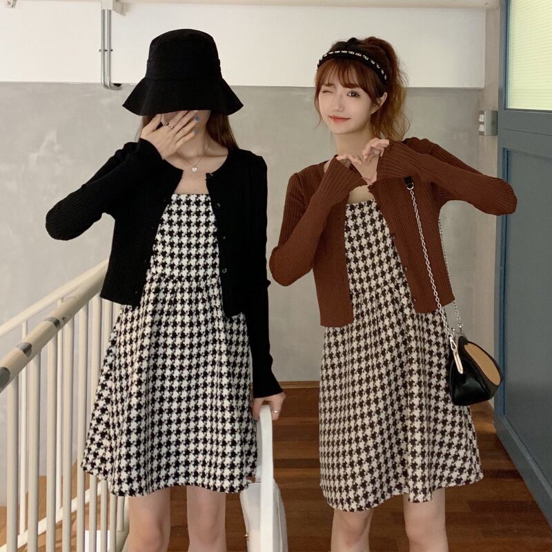 ✞ スカート 大人女子☆スタンダードキャミソールチェック柄ショートニットトップス オータムセット レトロ 秋物 ✞ゴスロリ SM ミリ 甘ロリ クラロリ 和ロリ エレガント 黒ロリ 姫ロリ 華ロリ BB-BB78791078773