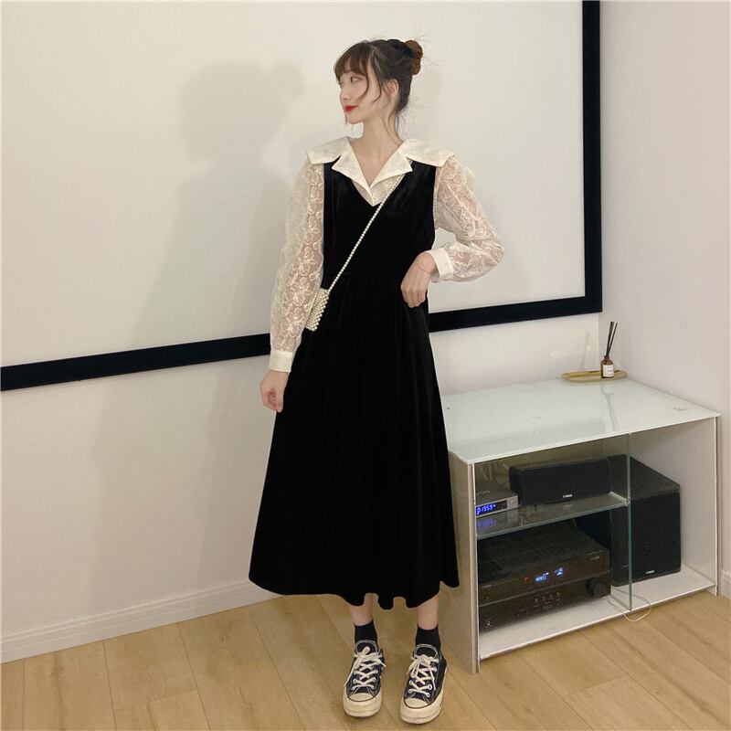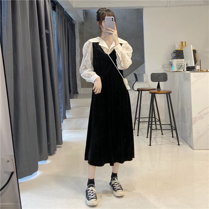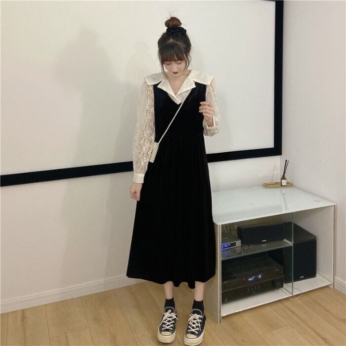 色:アプリコットシャツワンピース,黒のワンピース
