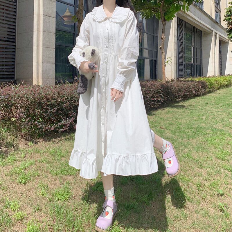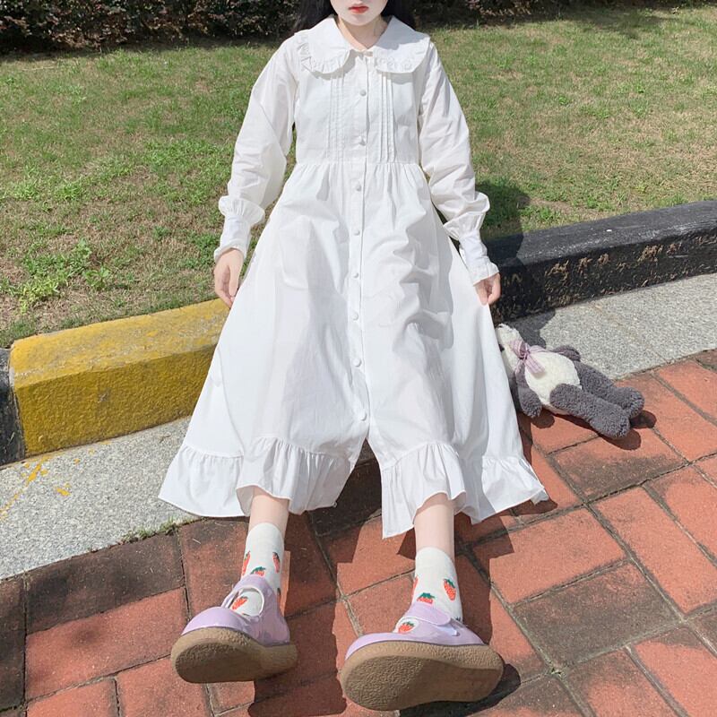 ✞ゴスロリフリルワンピースドレス ハイウェスト白スカート ロング ホワイト スウィート ✞ゴスロリ SM ミリ 甘ロリ クラロリ 和ロリ エレガント 黒ロリ 姫ロリ 華ロリ BB-BB53067222327