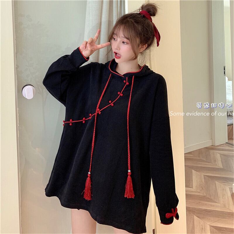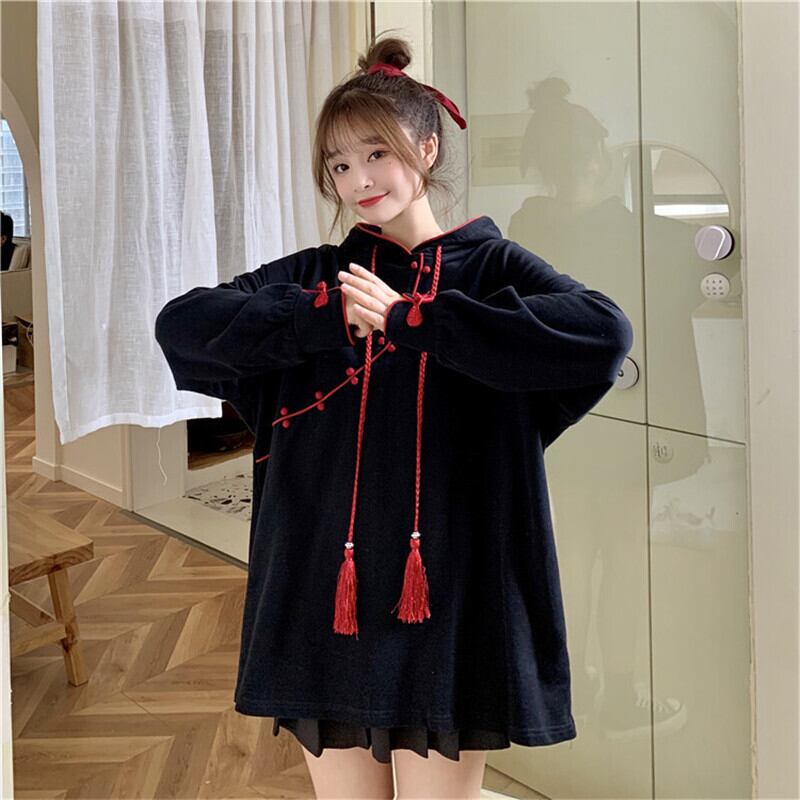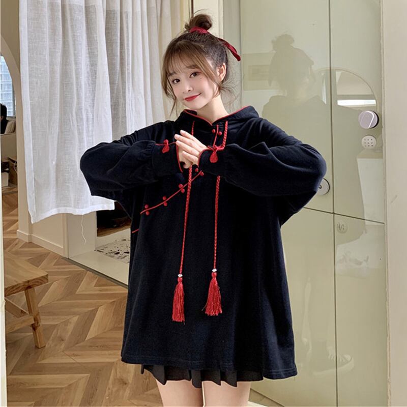 ✞チャイナ風フーディーギャザーベルベットプルオーバー セーター 大人女子☆ウィンター ロング レトロ 冬物 ✞ゴスロリ SM ミリ 甘ロリ クラロリ 和ロリ エレガント 黒ロリ 姫ロリ 華ロリ BB-BB7224385876