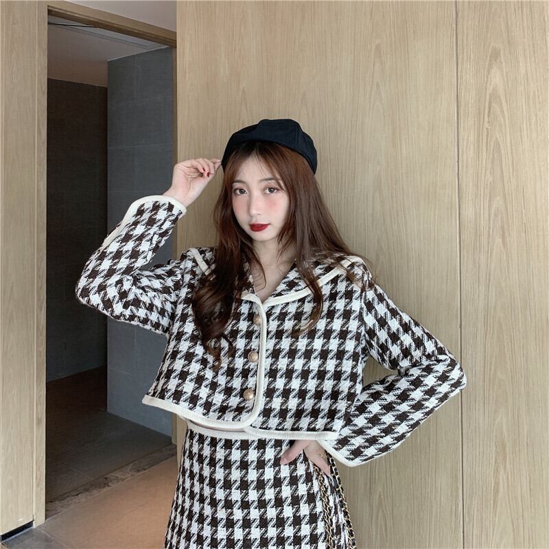 ✞チェックAラインスカート&ショート丈チェックトップス ロング レトロ 秋冬✞ゴスロリ SM ミリ 甘ロリ クラロリ 和ロリ エレガント 黒ロリ 姫ロリ 華ロリ BB-BB24424438463