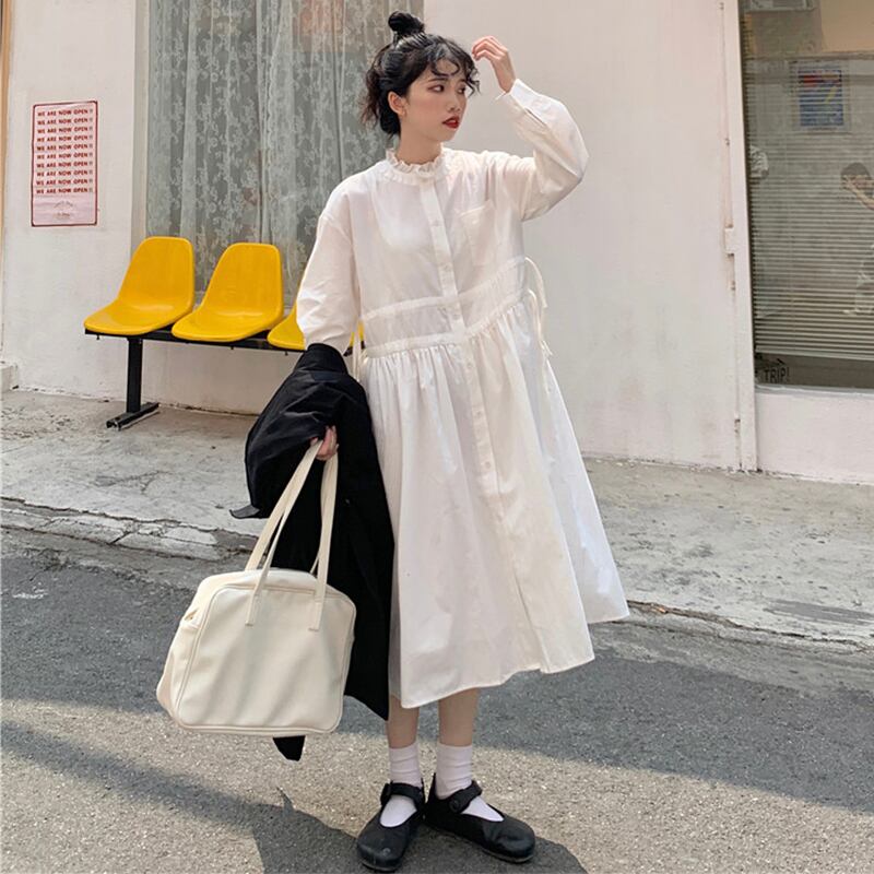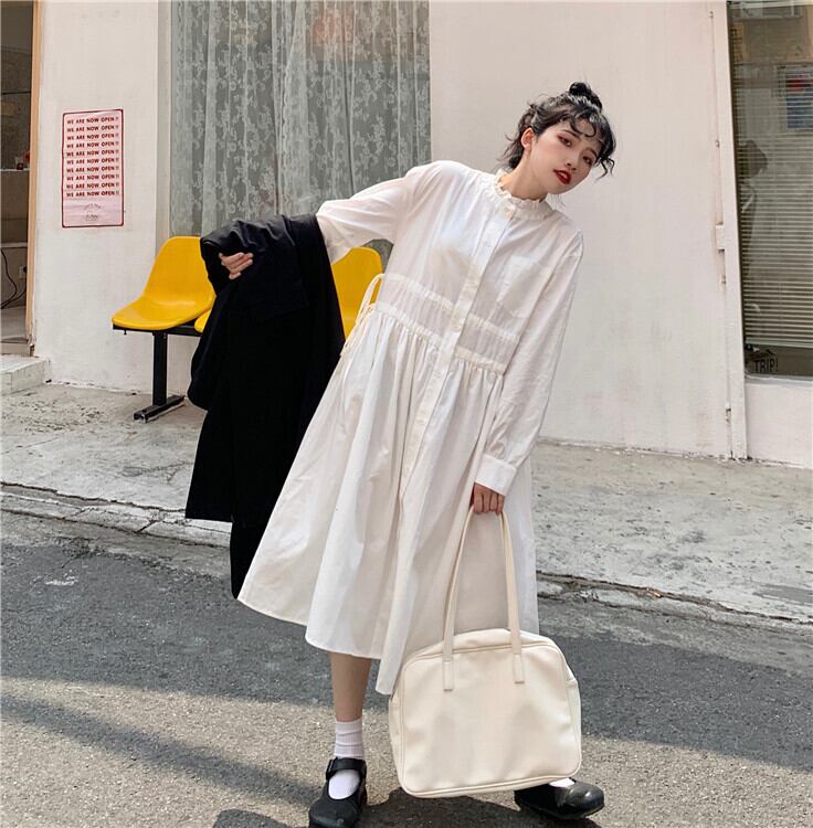 ✞ロリ長袖スリーブギャザーレースラウンドネックワンピースドレスOP or ブラックウインドブレーカーコート 白スカート ロング ホワイト スウィート ✞ゴスロリ SM ミリ 甘ロリ クラロリ 和ロリ エレガント 黒ロリ 姫ロリ 華ロリ BB-BB27082905937