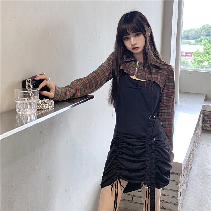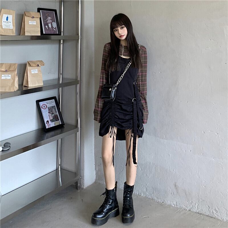 ✞ゴシックダークギャザーベルトストラップワンピースドレス ★スカート✞ゴスロリ SM ミリ 甘ロリ クラロリ 和ロリ エレガント 黒ロリ 姫ロリ 華ロリ BB-BB64395123403