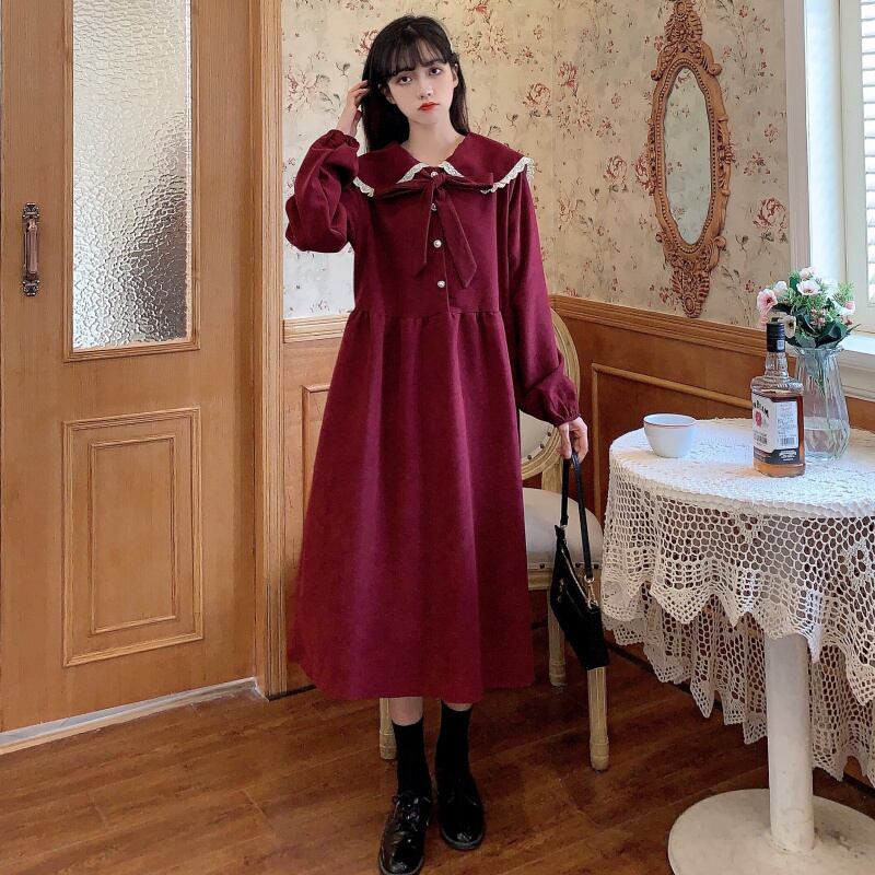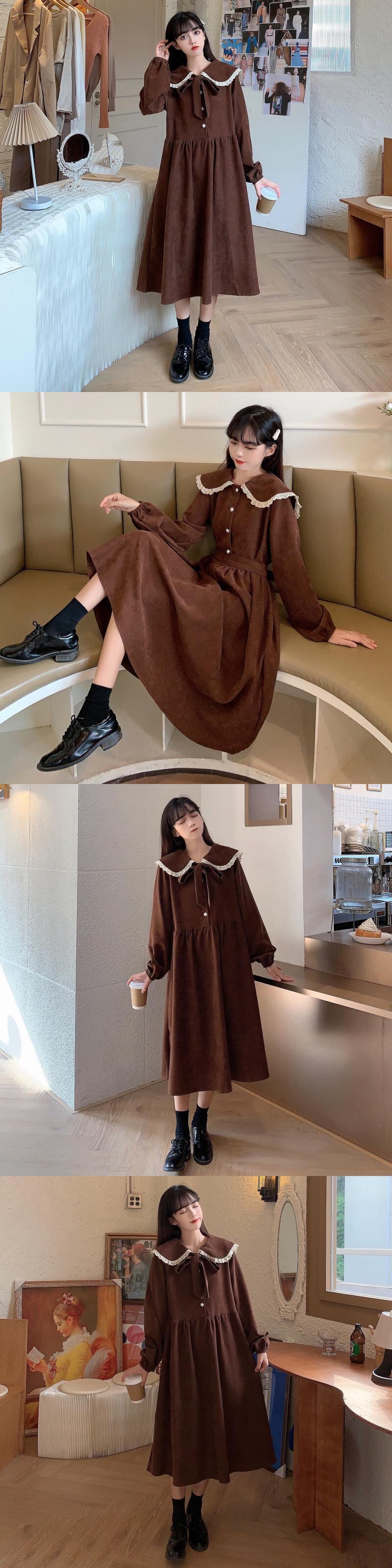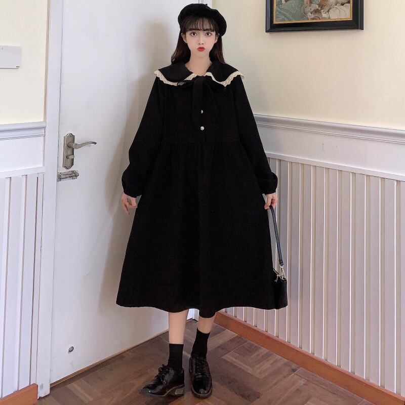 ✞リボンコーデュロイレトロワンピースドレスOP スウィート ✞ゴスロリ SM ミリ 甘ロリ クラロリ 和ロリ エレガント 黒ロリ 姫ロリ 華ロリ BB-BB271337592