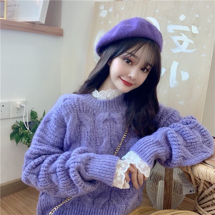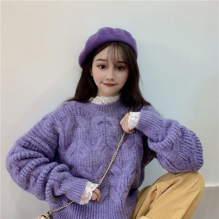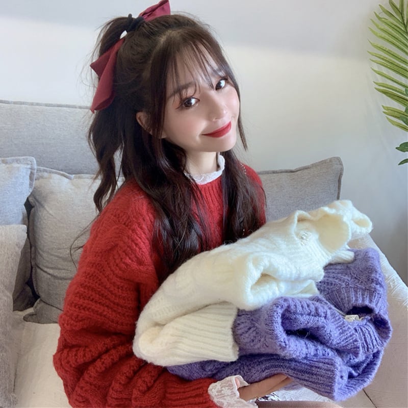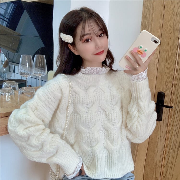 ✞ロリツイストニットセータートップス or ホワイトレースブラウスシャツ ウィンター ラウンドネック 長袖スリーブ ロング レトロ 秋冬✞ゴスロリ SM ミリ 甘ロリ クラロリ 和ロリ エレガント 黒ロリ 姫ロリ 華ロリ BB-BB60316242421