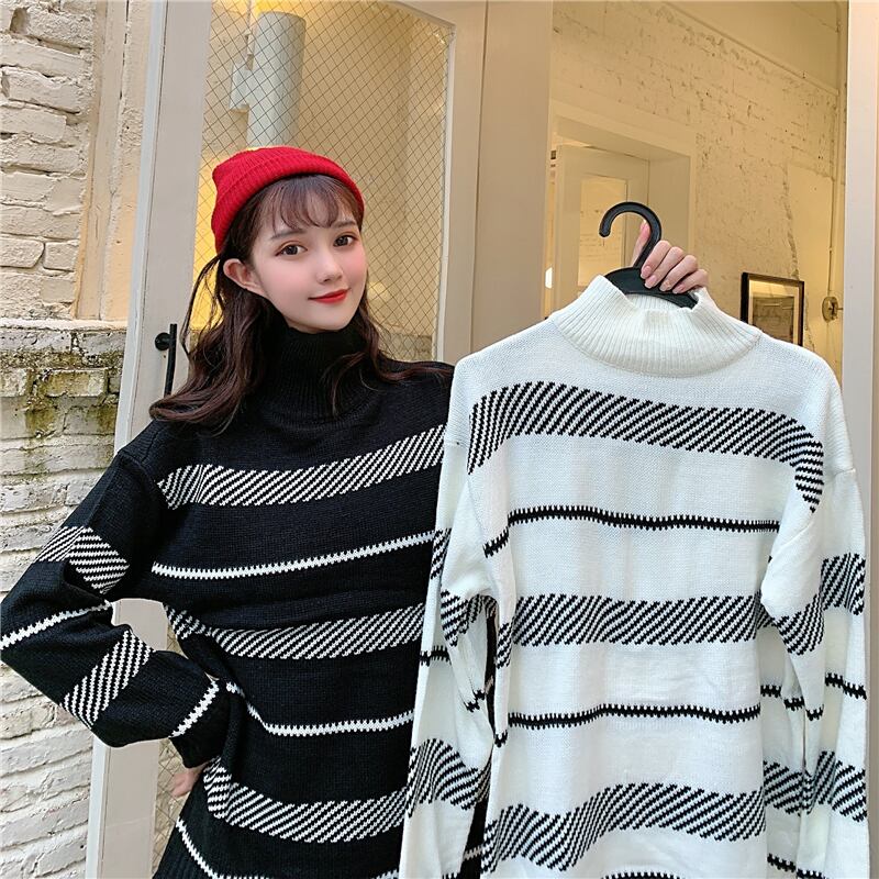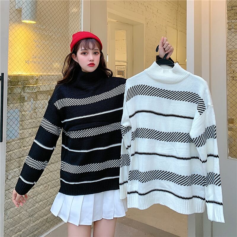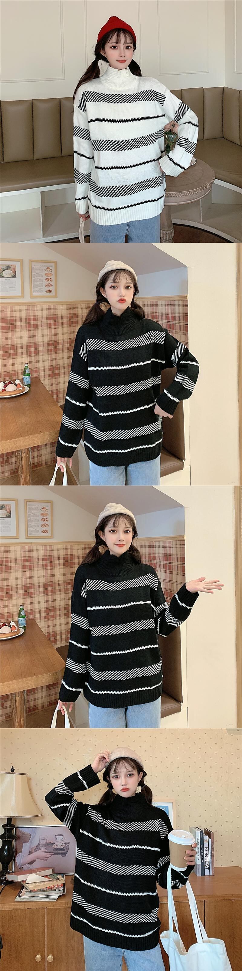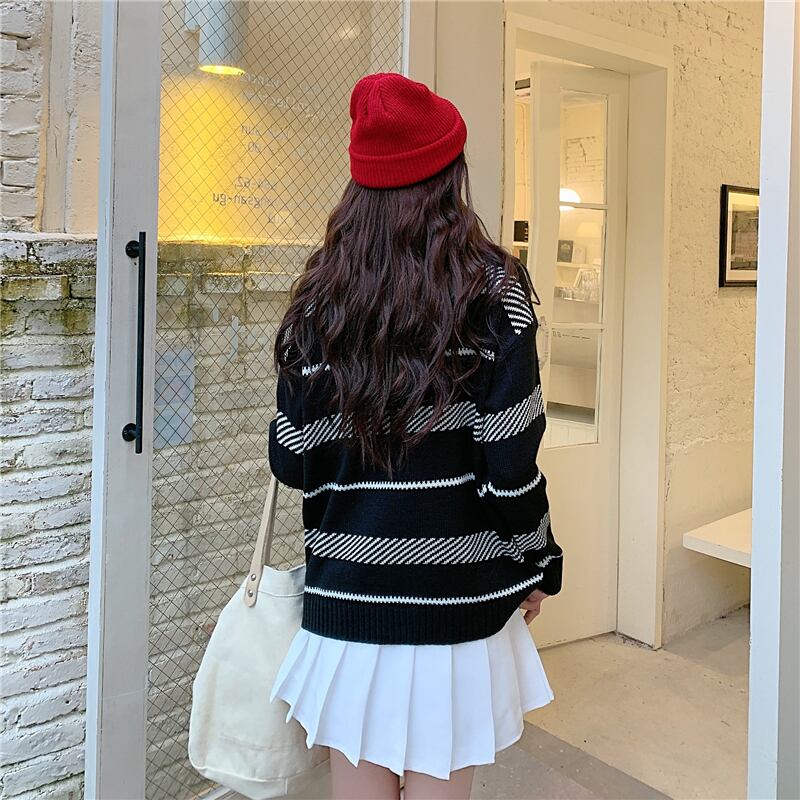 ✞プルオーバーオーバーサイズストライプセーター 大人女子☆♡ストライプニットトップス ウィンター レトロ 冬物 ✞ゴスロリ SM ミリ 甘ロリ クラロリ 和ロリ エレガント 黒ロリ 姫ロリ 華ロリ BB-BB57106833595